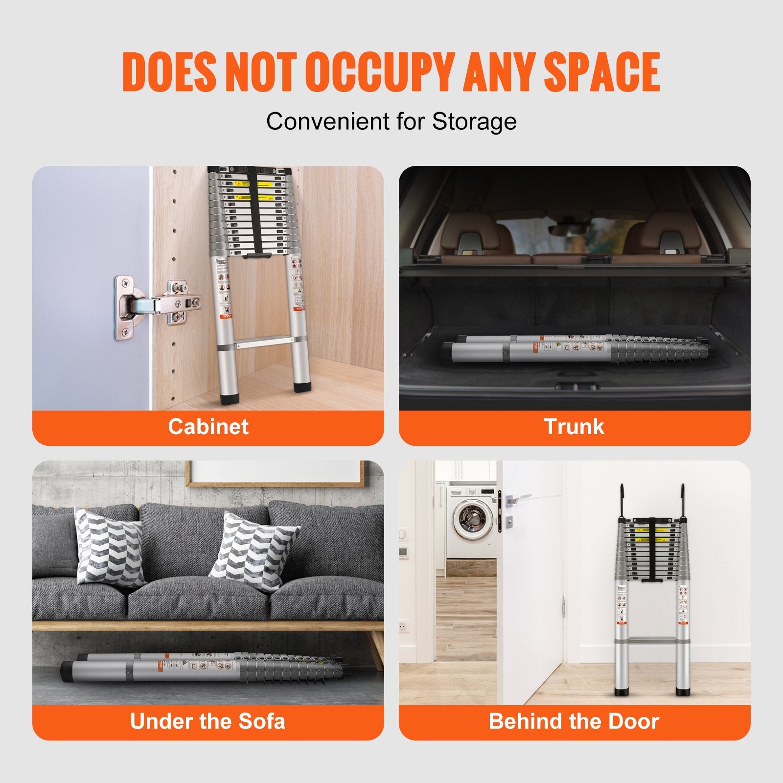 Convenient Storage: The foldable telescopic ladder is lightweight and compact, making it easy for female users to carry. You can place it almost anywhere, including under the sofa, behind doors, or in the trunk of your car. It is more portable and space-saving than traditional ladders.