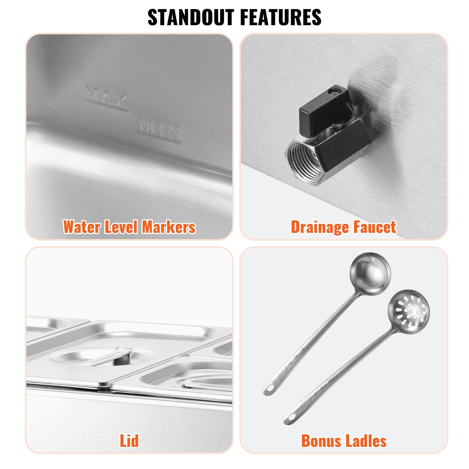 Sturdy Stainless Steel Construction: This food warmer is built to last, with a sturdy all-stainless steel construction that can withstand constant use and is easy to clean and maintain. The well has a thickened wall (0.03" / 0.8mm thick) for extra stability and has a secure water seal.