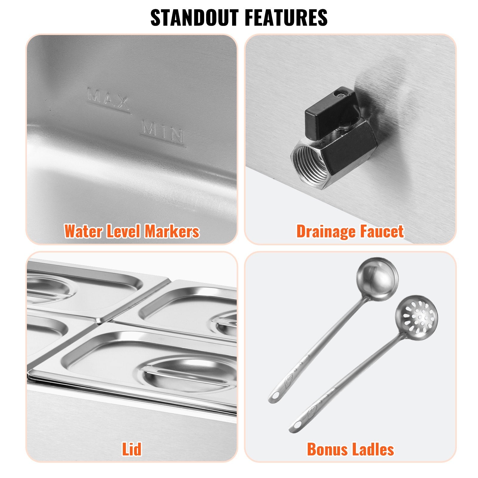 Sturdy Stainless Steel Construction: This food warmer is built to last, with a sturdy all-stainless steel construction that can withstand constant use and is easy to clean and maintain. The well has a thickened wall (0.03" / 0.8mm thick) for extra stability and has a secure water seal.