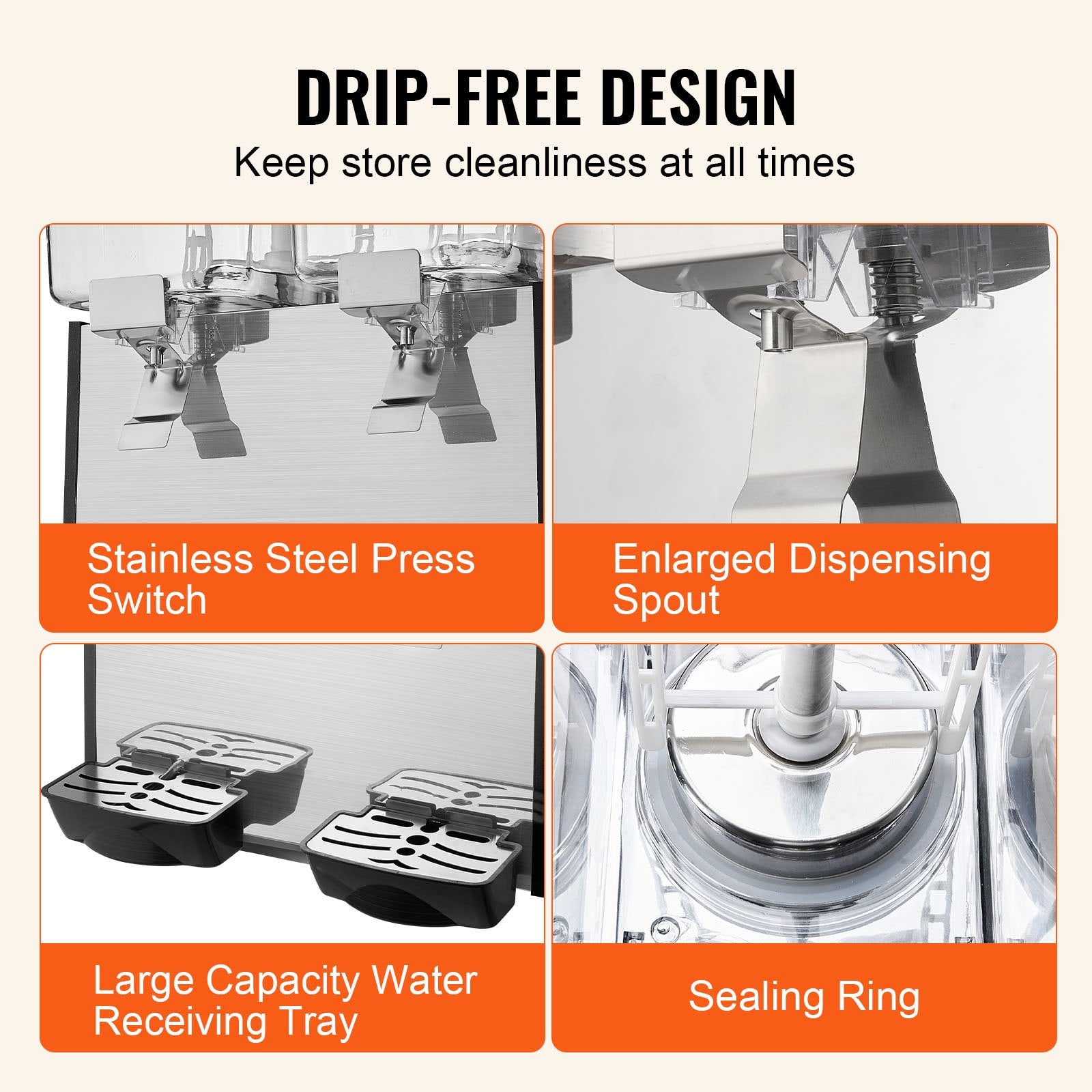 Commercial Beverage Dispenser 18L x 2 Tanks Cold Juice Ice Drink Dispenser