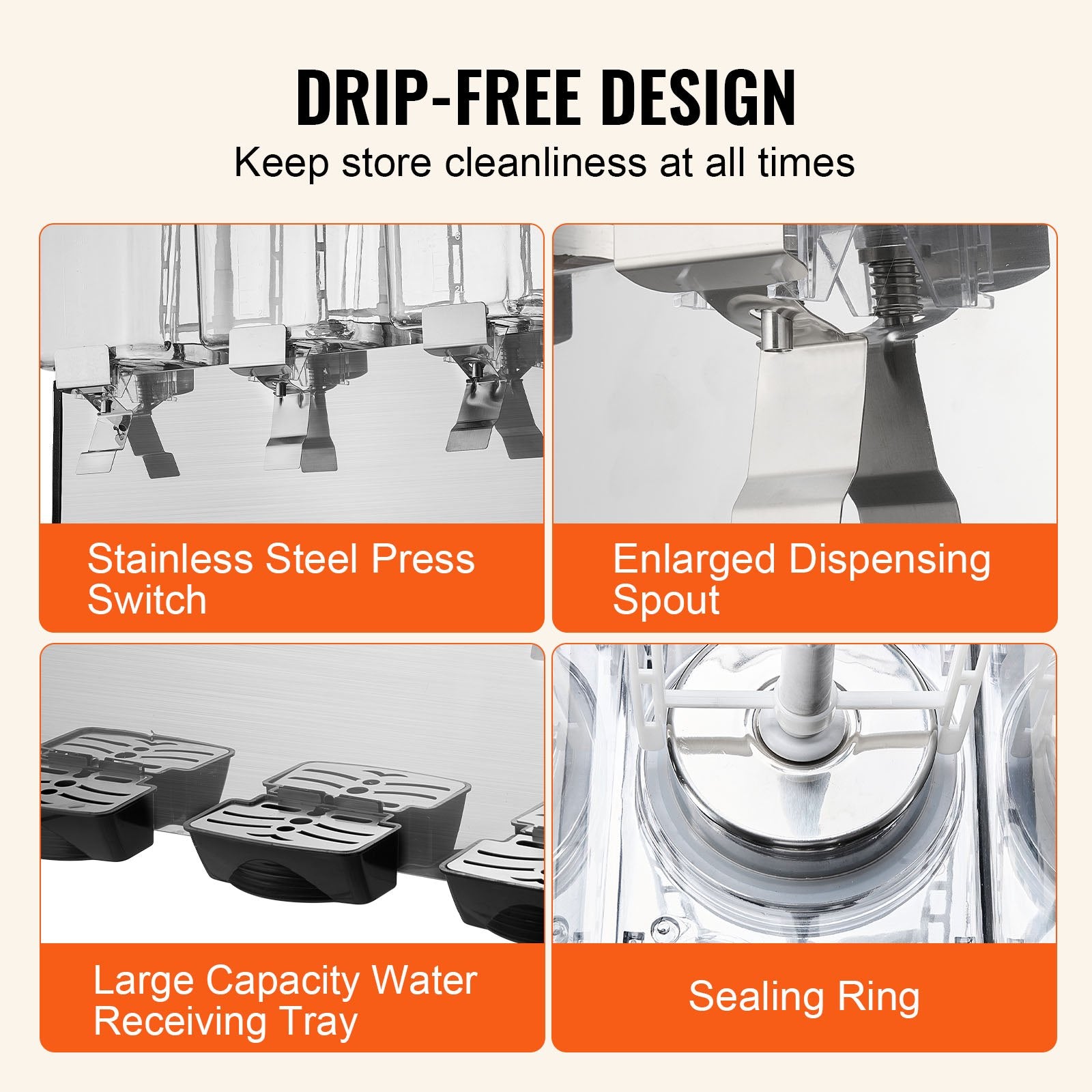 Commercial Beverage Dispenser 18L x 3 tanks Cold Juice Ice Drink Dispenser