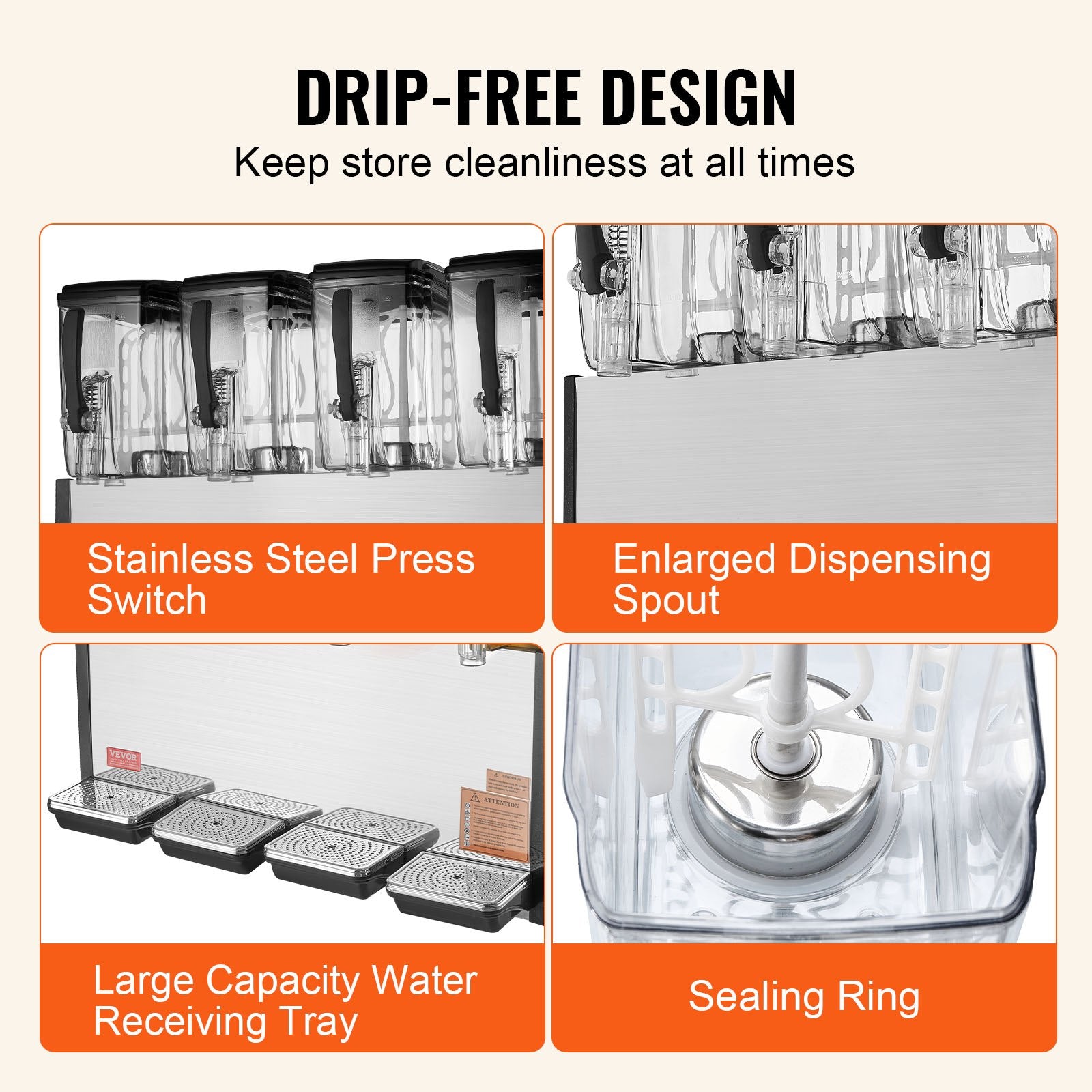 Large Capacity: This commercial beverage dispenser has a tank capacity of 12L, and can hold a large volume of beverages. It has an upgraded wide-diameter dispensing spout, which allows for smooth and easy dispensing of beverages with small particles such as coconut juice and fruit pulp. Equipped with a rubber sealing ring to prevent beverage leakage.