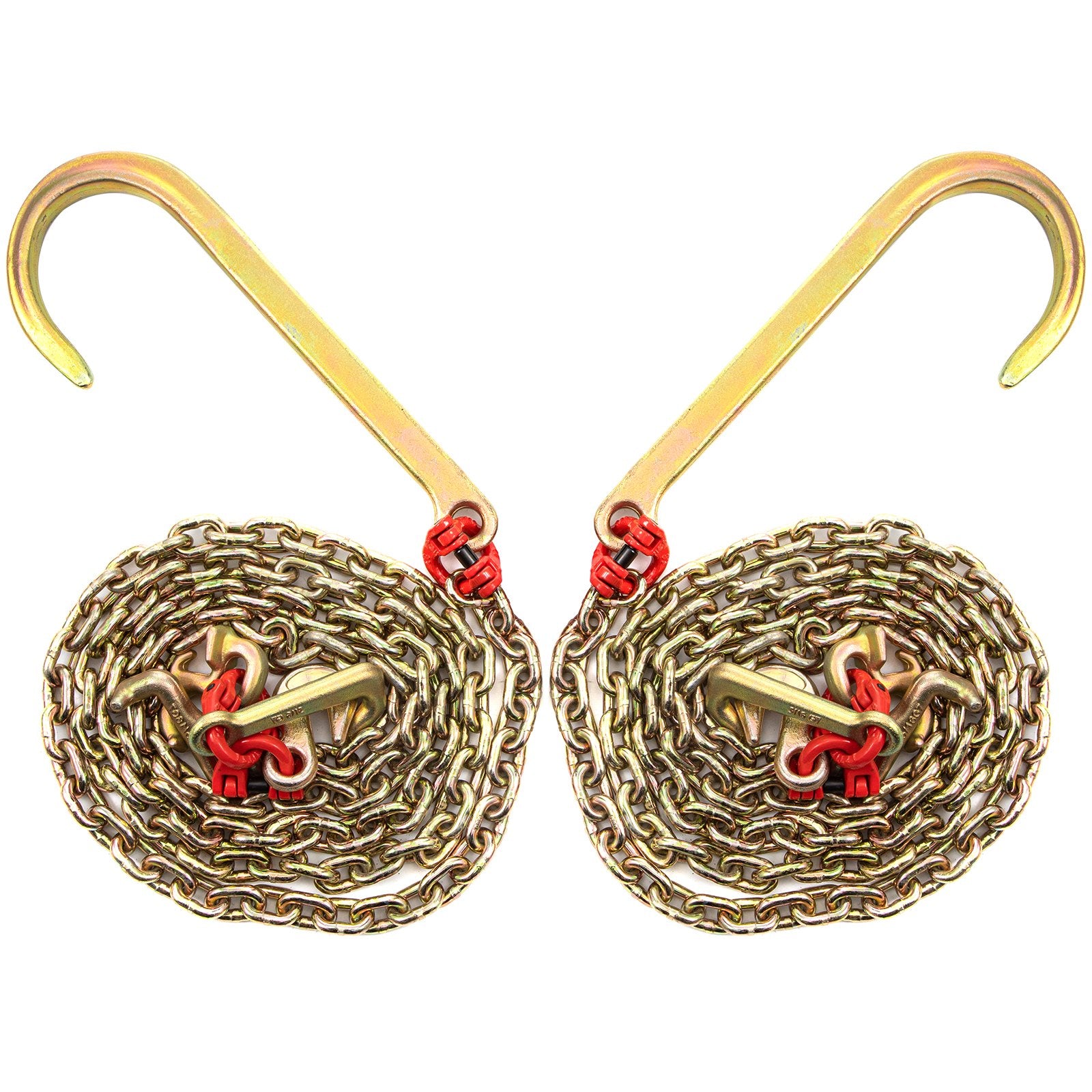 J hook chain, 5/16 inch x 10 ft bridle tow chain, G80 bridle transport chain, alloy steel chain with 2 G70 J hooks, 9260 lb breaking strength tow hooks for trucks, J hooks tow straps 2 pcs.