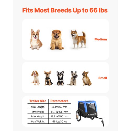 Hundcykelkärra, Stöder upp till 30 kg, Cykelhållare för små och medelstora hundar, Lättfällbar ram med snabbkopplingshjul, Universal cykelkoppling, Reflex, Flagga, Invändigt koppel | EU