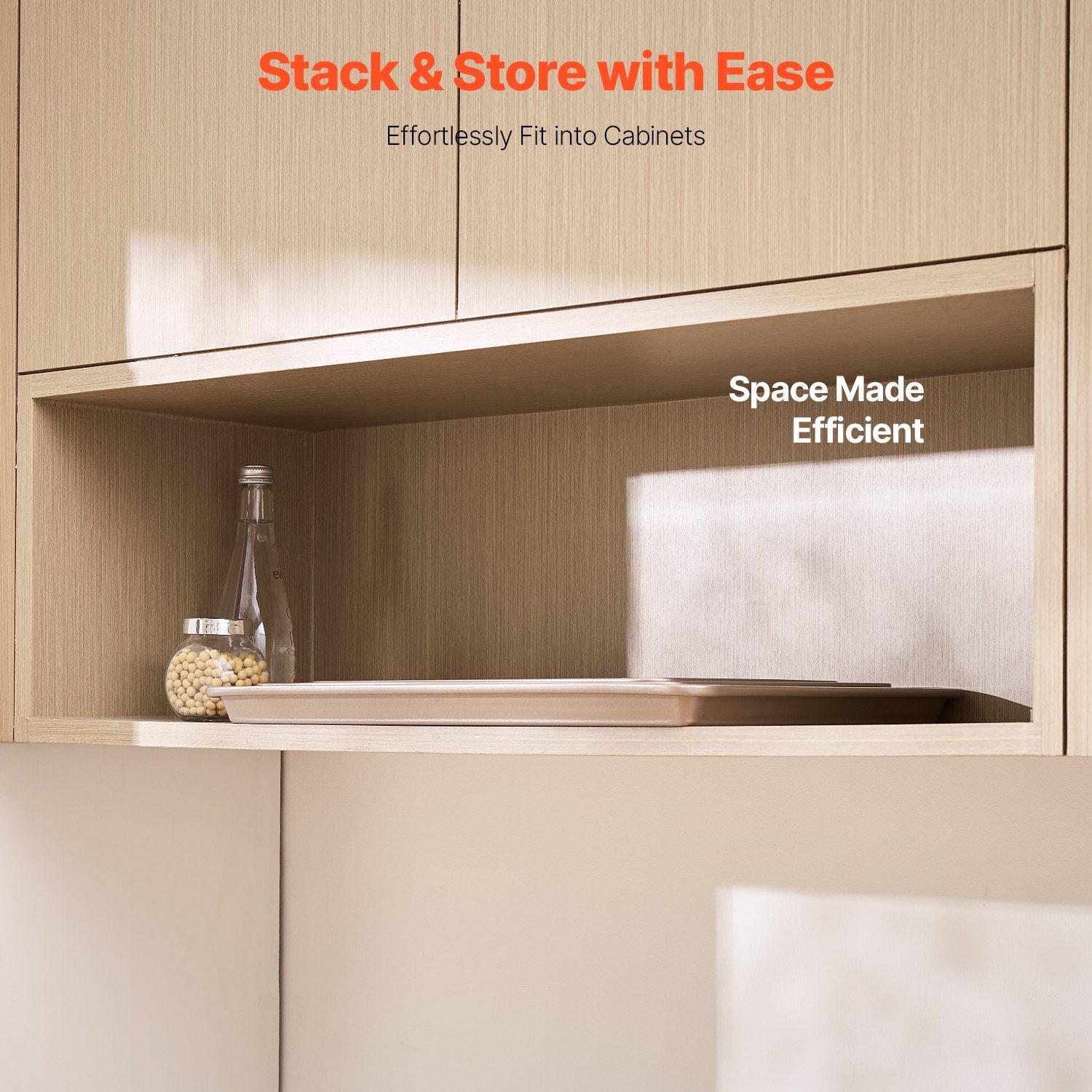 Reliable and Outstanding Material: Made from durable, scratch, stain and corrosion resistant materials, this baking sheet set is PFOA, BPA and PTFE free, ensuring reliable performance with every use. Ideal for your baking sheets, baking pans and more!