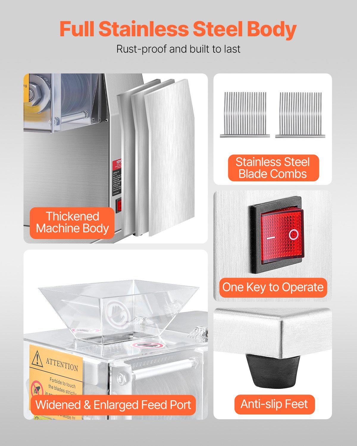 Handles Multiple Ingredients: Our meat slicer comes with a widened and enlarged feeding port for added safety and convenience. It is great for cutting boneless meats such as pork, lamb, beef and fish, as well as soft vegetables such as cabbage and mushrooms. Not suitable for meat with bones, frozen food or hard vegetables such as potatoes, carrots and lotus roots.