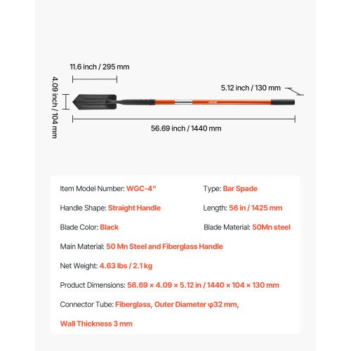 Lättviktsstorlek: Vår grävskopa har en totallängd på 146 cm och ett metallblad på 10 x 28 cm, vilket kombinerar effektivitet och balanserad storlek. Med en vikt på bara 2,2 kg håller den ditt arbete lätt och enkelt.