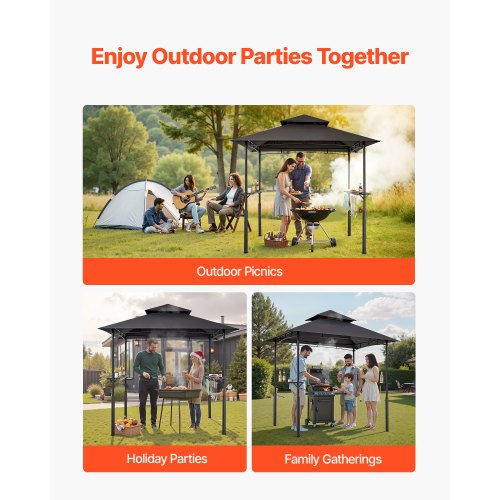 Festplats för alla väder: Från uteplatser och däck till poolkanter och trädgårdar, detta grilltält är ditt val för trädgårdsnöjen. Oavsett om du är värd för en helgmatlagning, familjepicknick eller utomhusfest, håller det igång festen oavsett regn eller solsken.