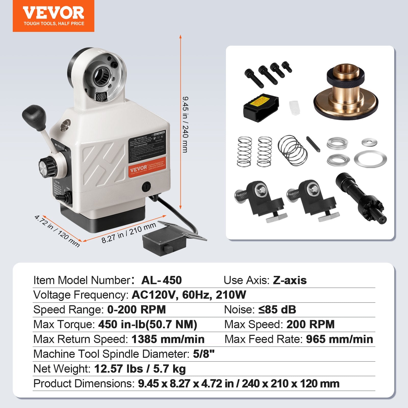 Z-Axis Power Feed for Milling Machine, 450 in-lb Torque, 0-200RPM Adjustable Rotate Speed 120V Power Table Feed Mill Feeder, for Bridgeport Some Knee Type Mills with a 5/8" End Shaft Diameter
