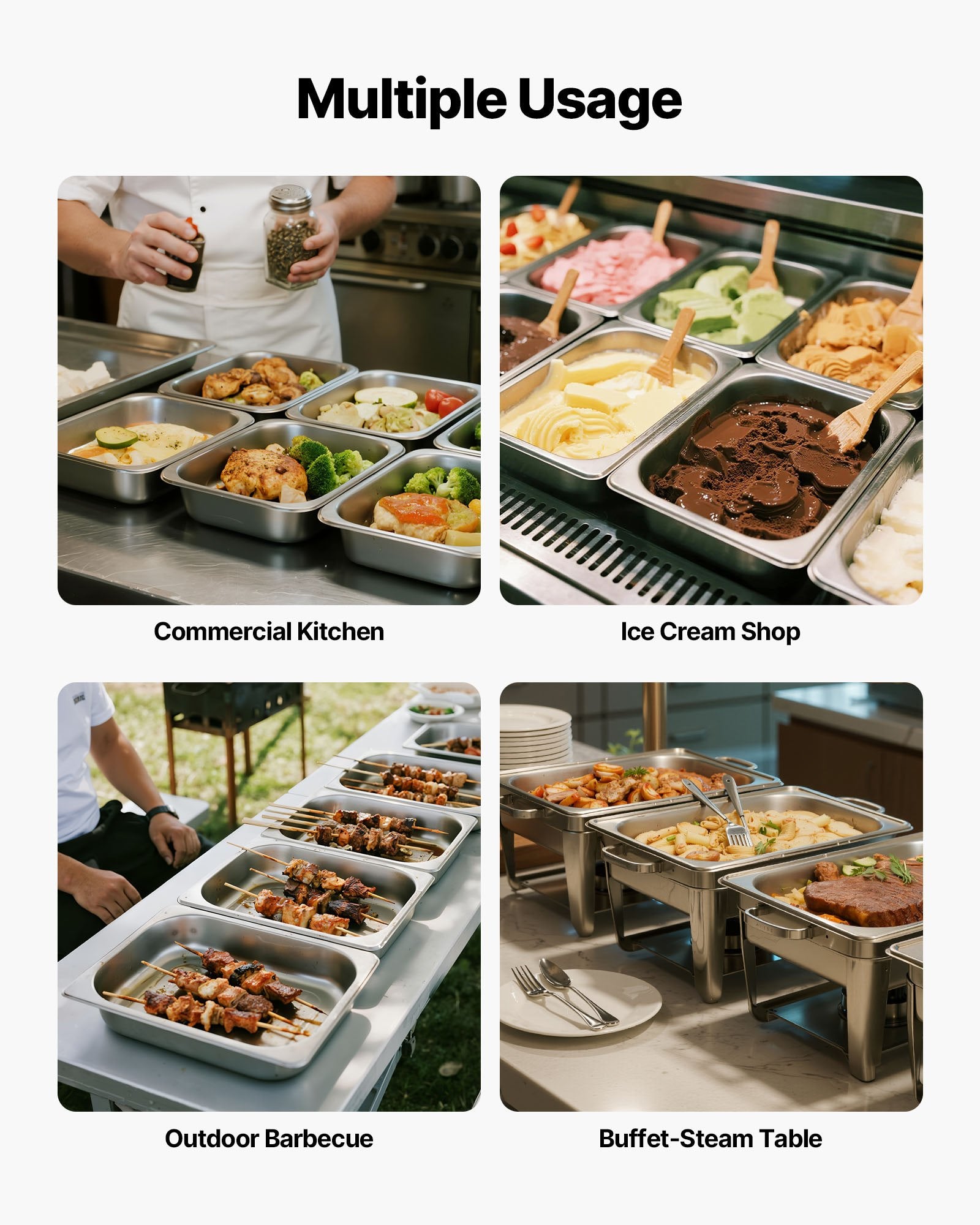 - Thoughtful Design: This Stainless Steel Food Pan is ideal for weddings, parties, restaurants, and hotels. Whether you're preparing meals for a large family or managing a food service business, the multi-pack set meets a wide range of cooking and serving needs