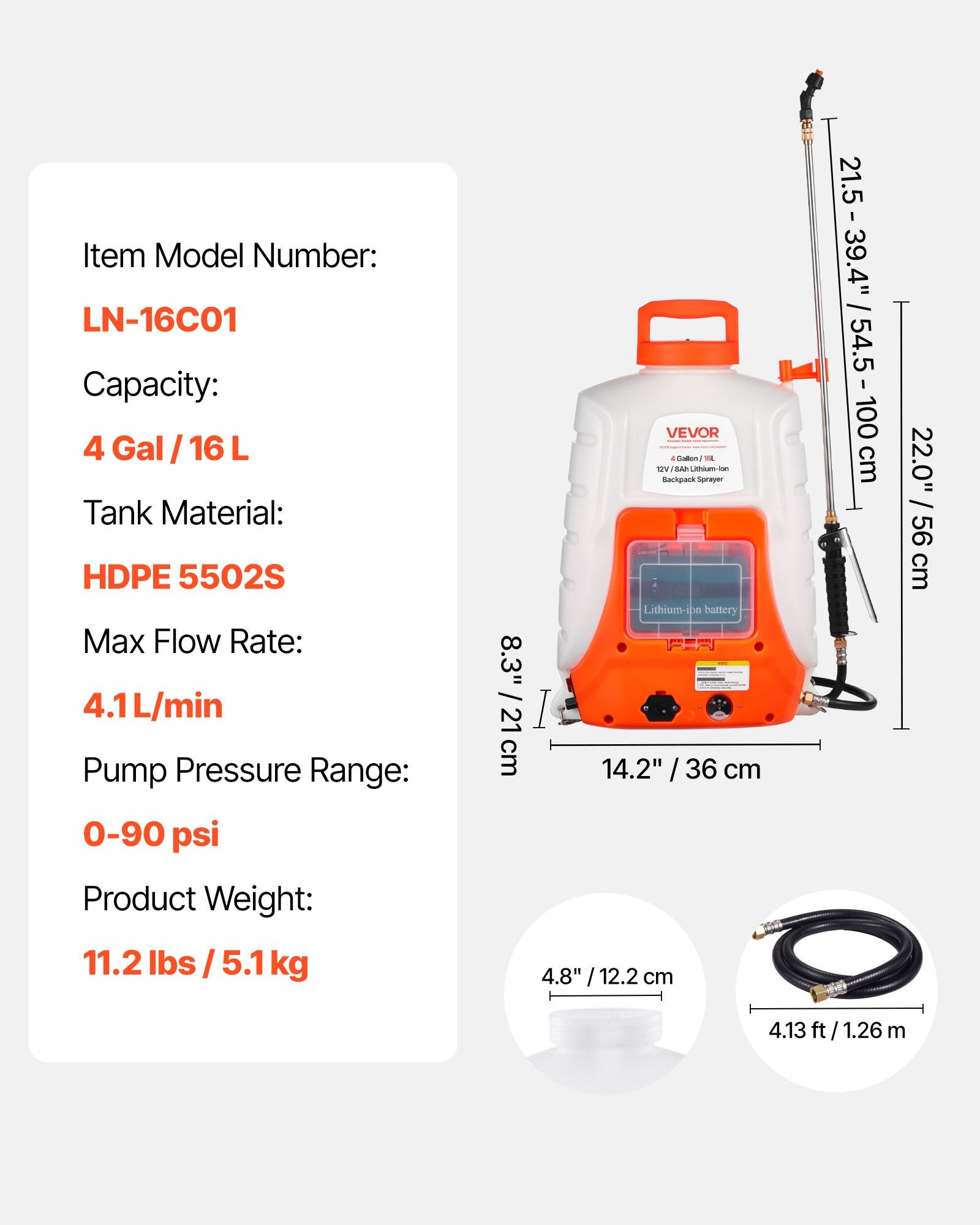 - Capacity: 4 Gal / 16 L (Tank weight: 2050 ± 60 g)