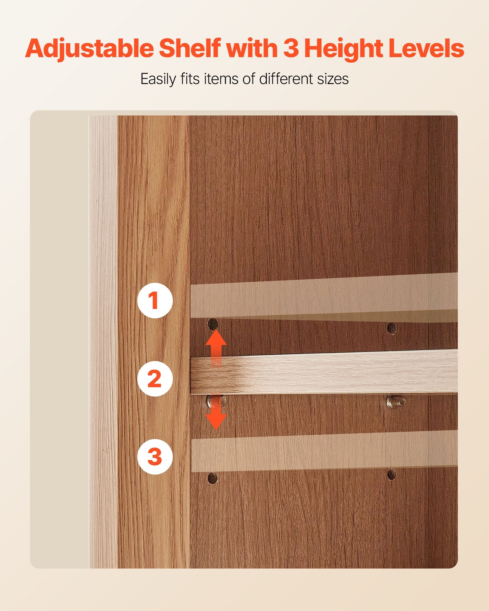 - Adjustable Shelf: The wall mounted bathroom cabinet features an adjustable shelf with 3 height levels, designed to freely adapt to items of different heights. Flexible layout meets diverse storage needs, maximizing bathroom space utilization