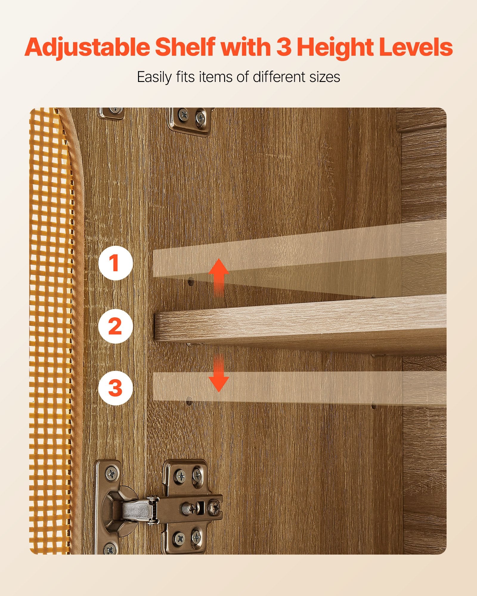 - Adjustable Shelf: The wall mounted bathroom cabinet features an adjustable shelf with 3 height levels, designed to freely adapt to items of different heights. Flexible layout meets diverse storage needs, maximizing bathroom space utilization
