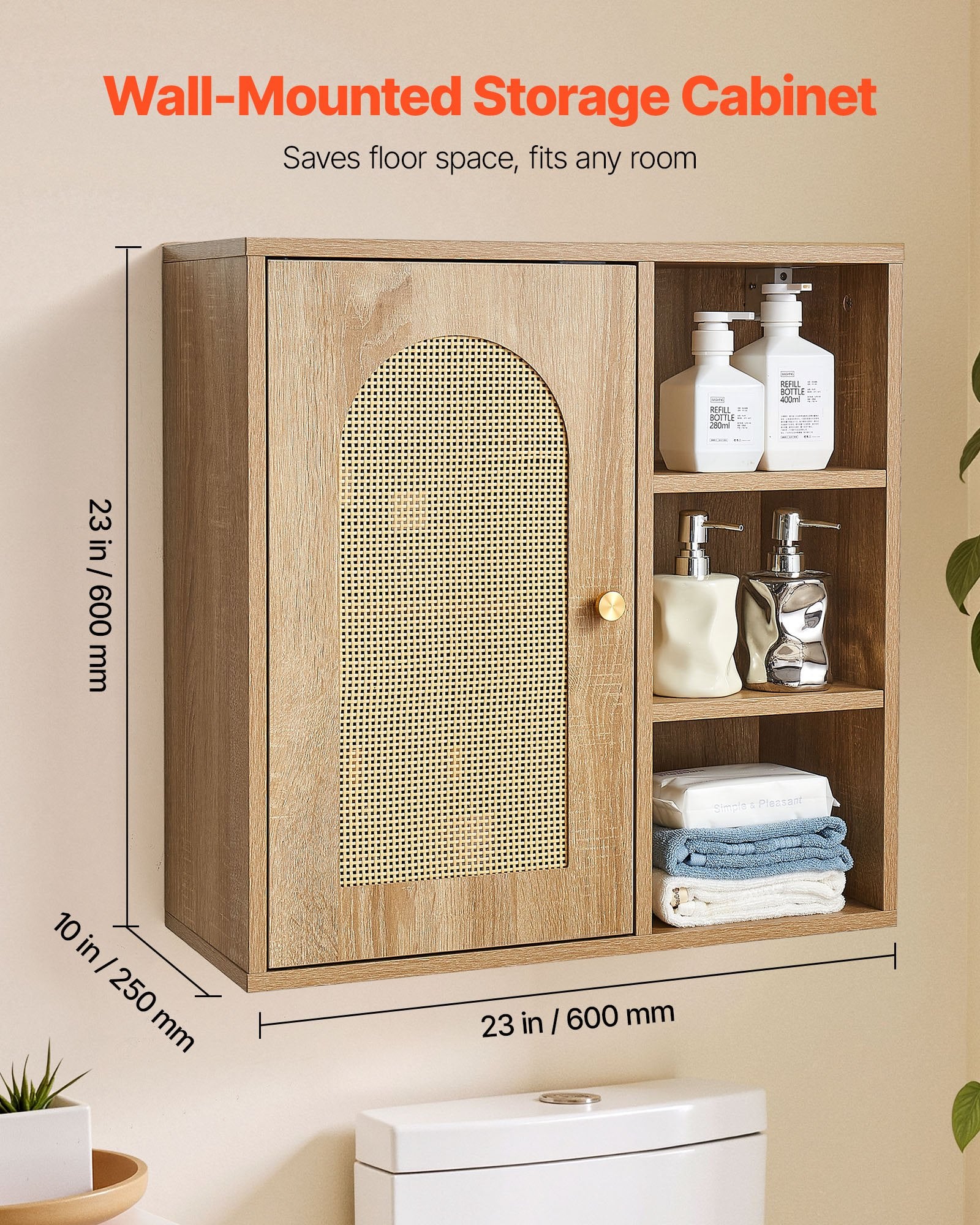 - Space-Saving Design: The bathroom wall storage cabinet cleverly uses vertical space, installing flexibly above various walls. It easily improves space utilization, making it a great choice for space optimization