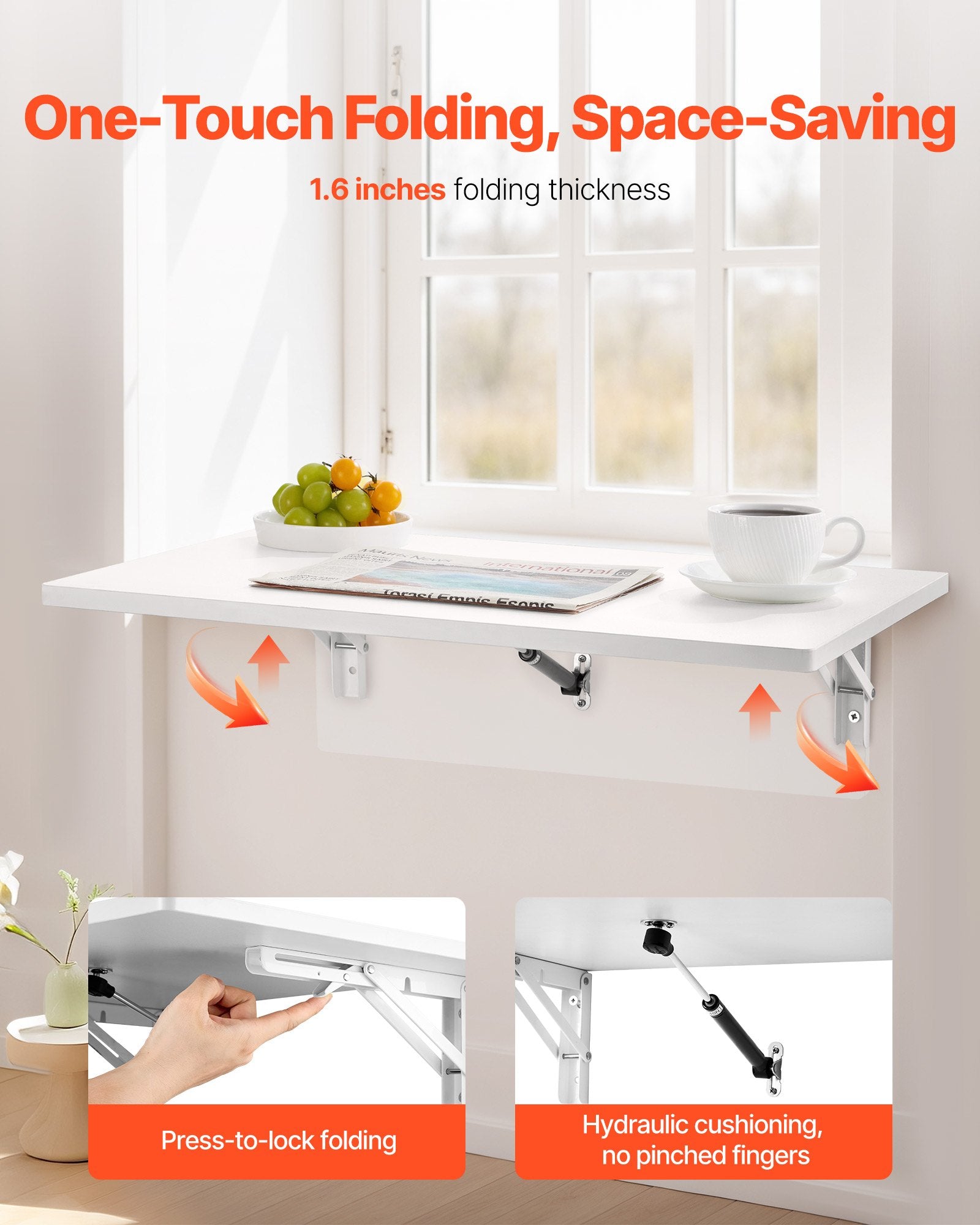 - Slow-Closing Folding: Designed to save space, this wall mounted folding table folds and unfolds quickly, ideal for small spaces. The slow-closing brackets prevent pinching during use, making it ultra-convenient for immediate use without the need for large reserved spaces—just unfold and start working or display items.