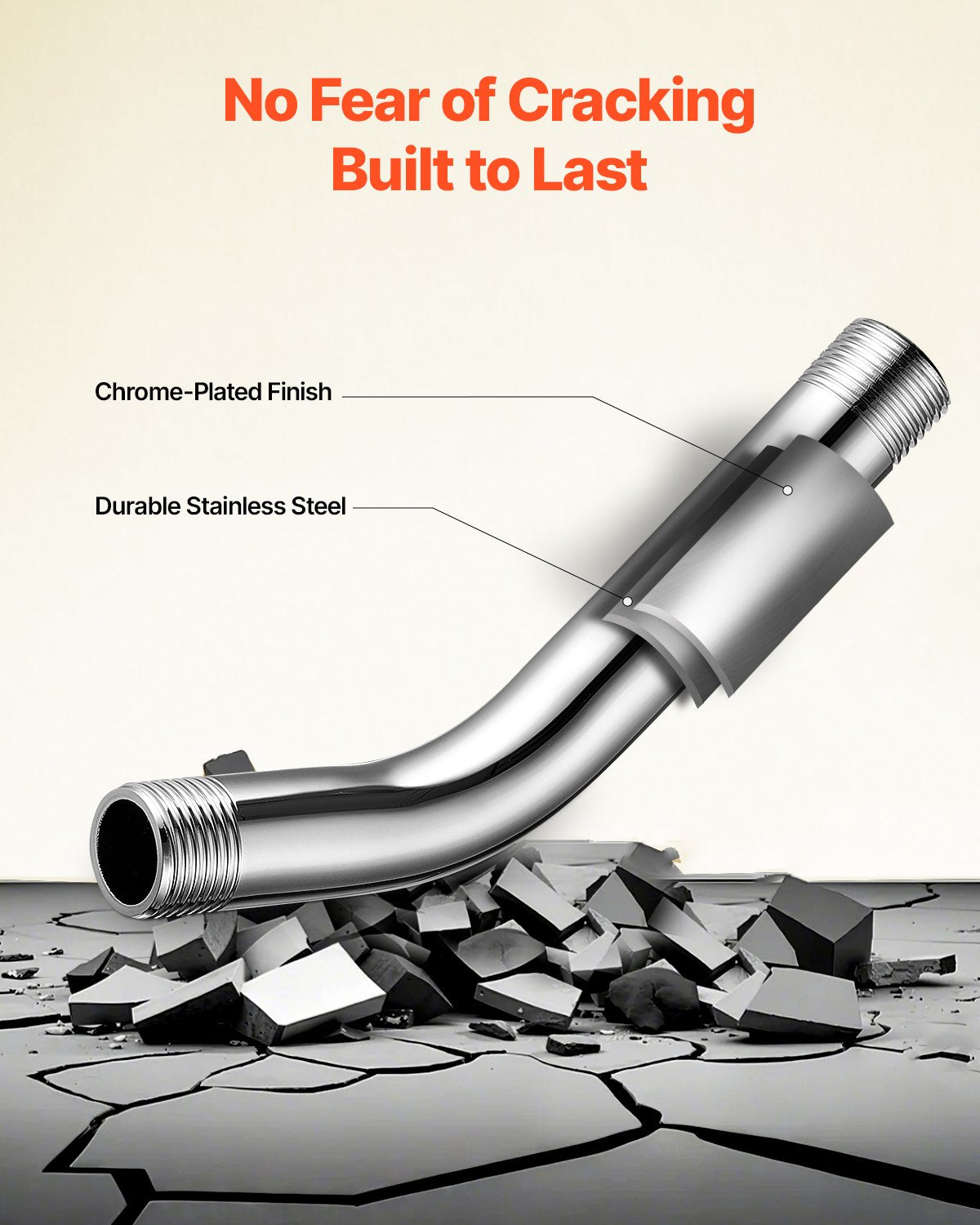 - Premium Stainless Steel Construction: Crafted from high-strength stainless steel, this shower head extension arm is built to last. The chrome-plated rust-resistant finish ensures double protection, keeping it strong and stable for long-term use