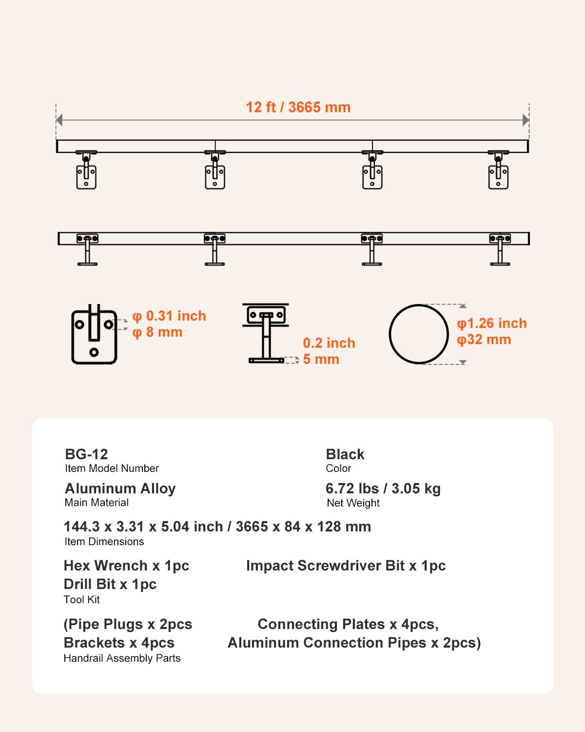 - Complete Premium Accessories: The package includes all essential installation tools. No additional purchases needed – just follow the instructions to quickly set up your wall mounted stair railing upon arrival
