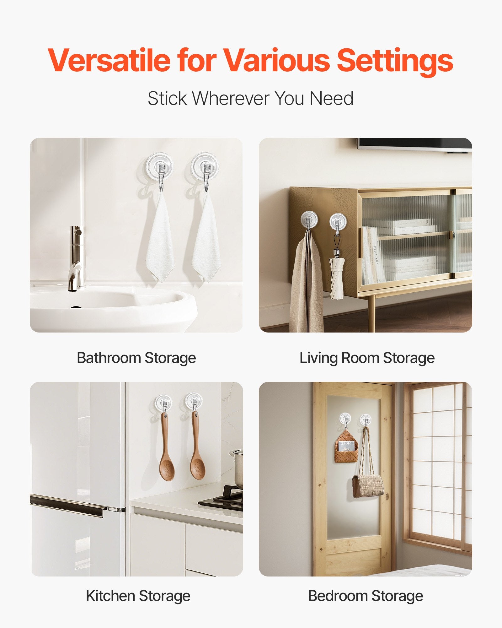 - Versatile Use on Smooth Surfaces: These clear suction cup hooks cling securely to tile, glass, mirrors, metal, plastic, and more. Ideal for kitchens, fridges, cabinets, offices, dorms, hotels, and stores—anywhere you need instant hanging power