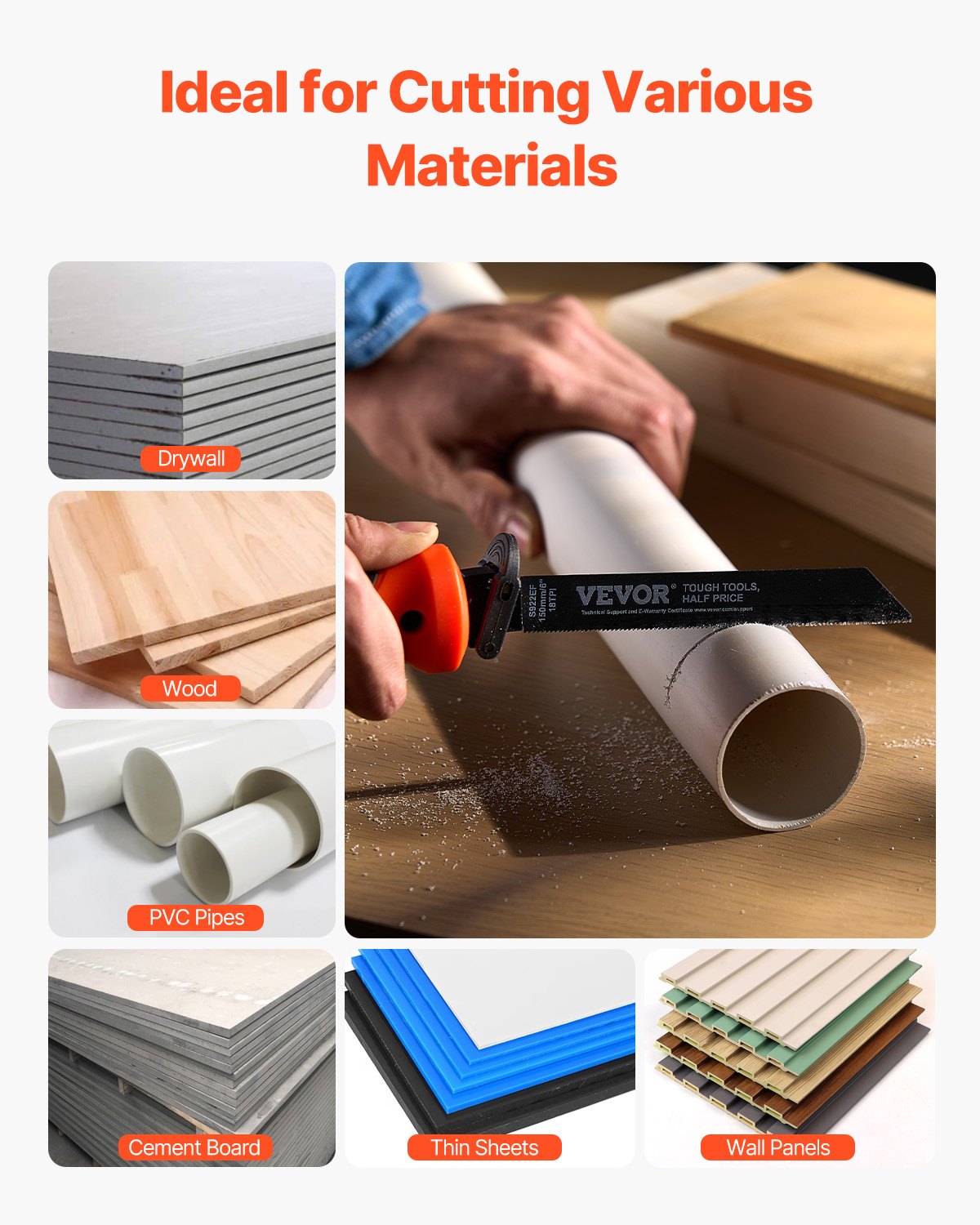 - 8-in-1 Adjustable Saw: Equipped with eight different saw blades, including drywall saw blades, T-handle curve blades, and reciprocating saw blades, it's ideal for various cutting tasks. Suitable for DIY projects and repairs, providing versatile cutting solutions.
