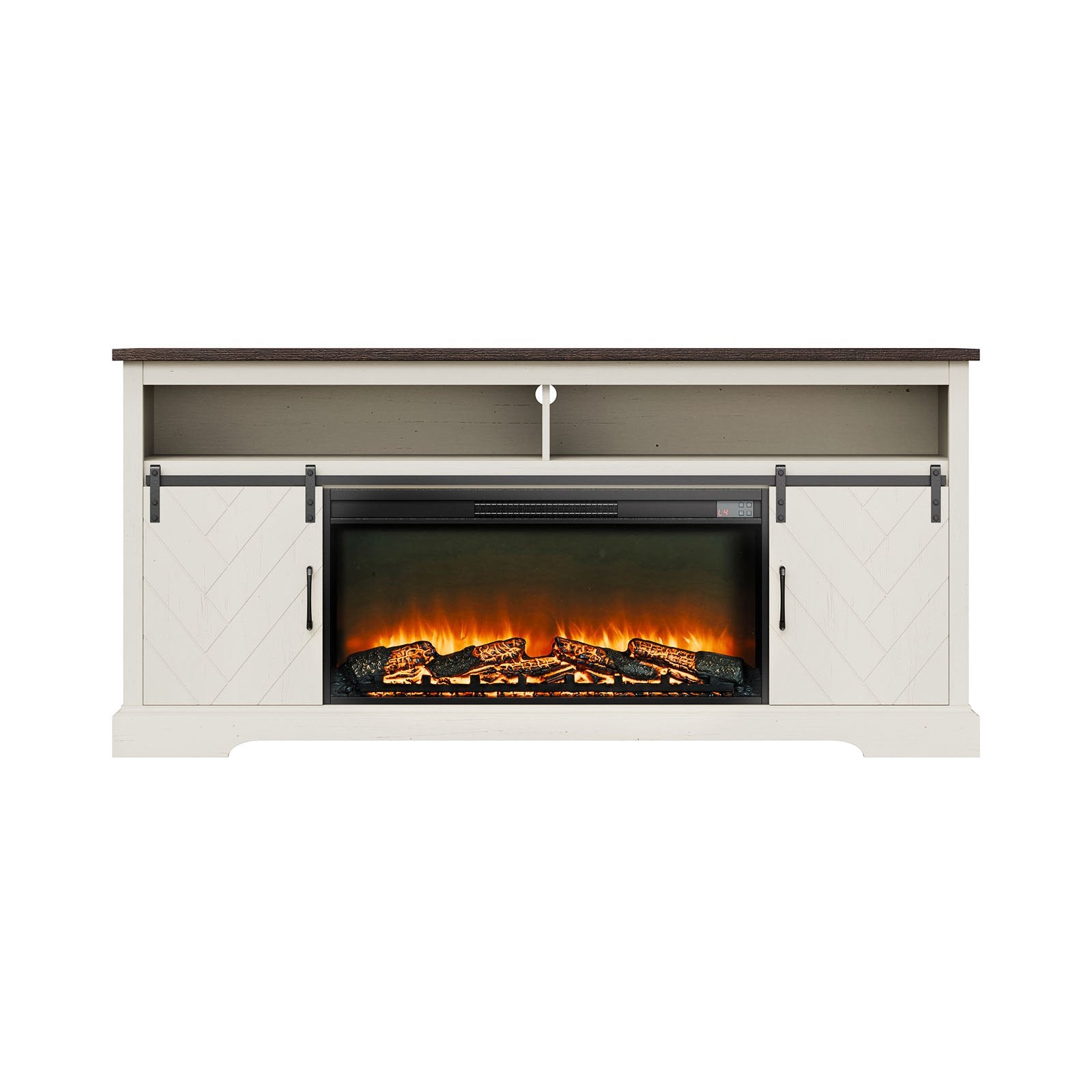 Fireplace TV Stand, Farmhouse Fireplace TV Stand for TVs up to 80 inch, Farmhouse Entertainment Center with 36 inch Fireplace & LED Lights, Electric Fireplaces for Living Room Bedroom, White