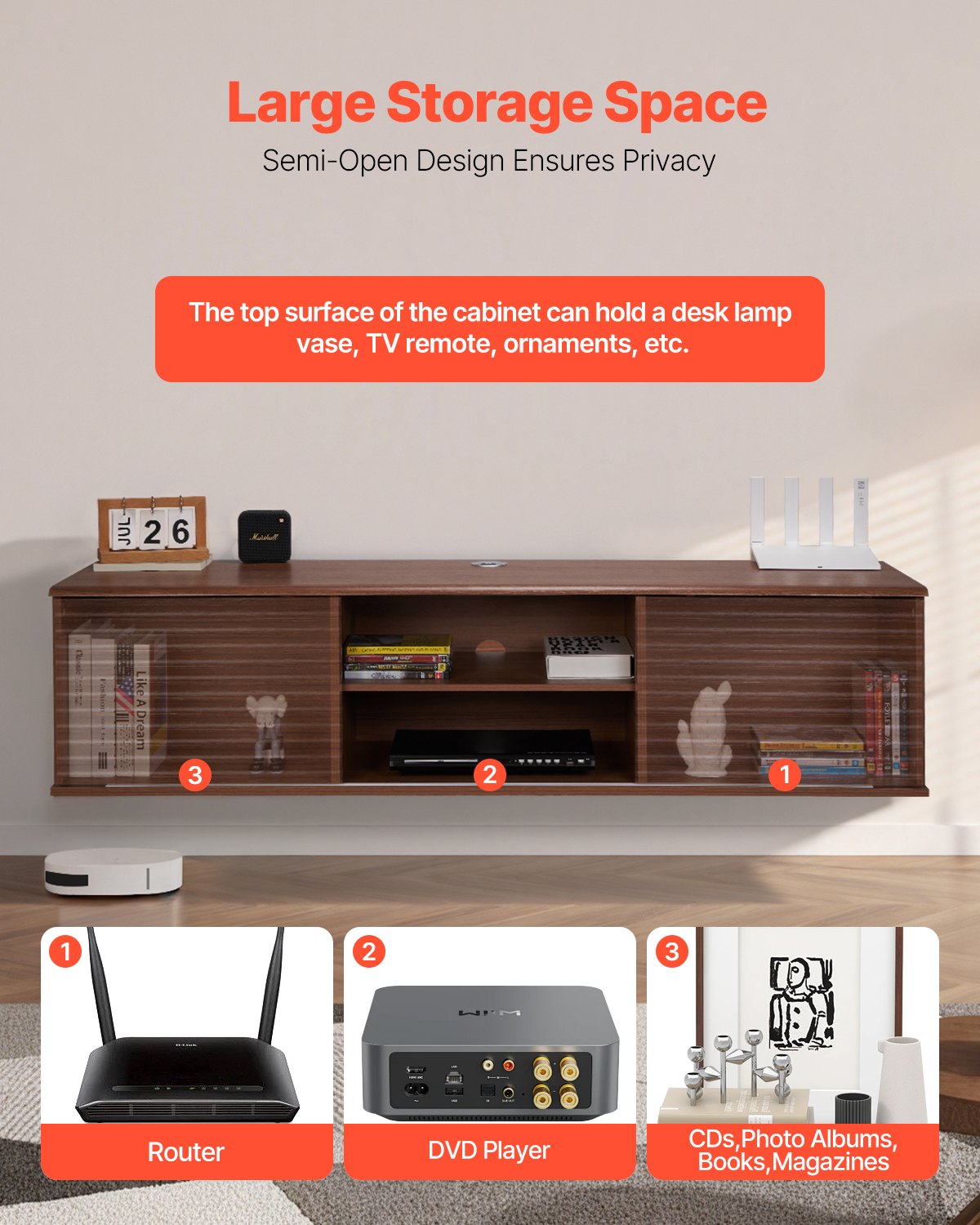 - Hassle-Free Setup: Installing your new floating entertainment shelf is a breeze! It comes with all the hardware you need, and the quiet hinge doors won’t make a sound. With easy-to-follow instructions, you’ll have it set up in no time—no missing parts, no complicated steps.