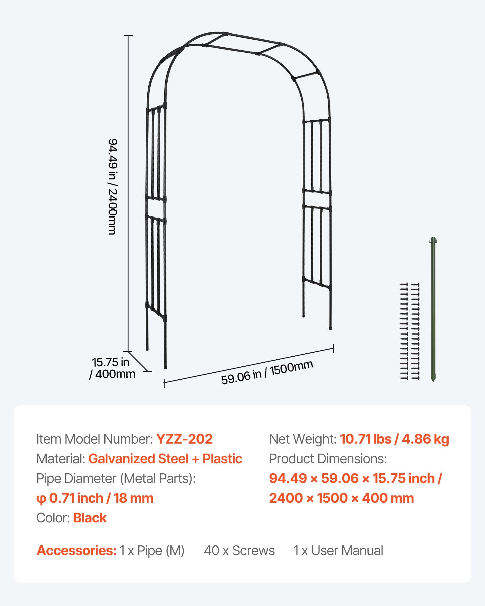 Garden Arbor, 94.5 (H) x 59 (W) x 15.8 (D) in Metal Archway, Sturdy Outdoor Trellis Arch with Stakes, Easy to Assemble, Pergola Arbor for Plant Climbing Yard Lawn Wedding Party Decoration