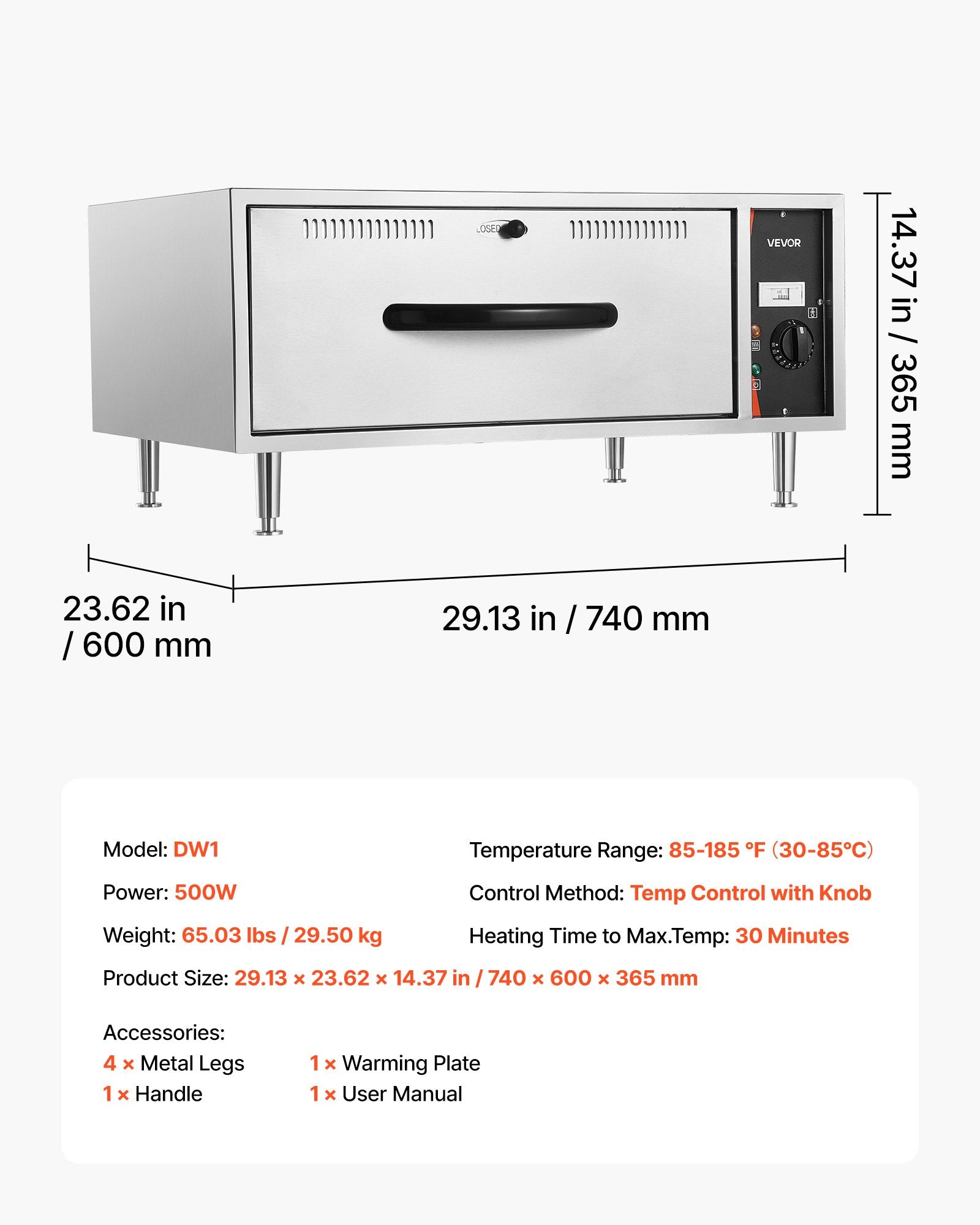 - Wide Application: With a temperature range of 85–185 ℉ (30–85 °C), this drawer food warmer is ideal for bakeries, home gatherings, hotel kitchens, catering, and more, keeping a variety of foods ready to serve. Note: Actual temperature effect varies with food type and quantity