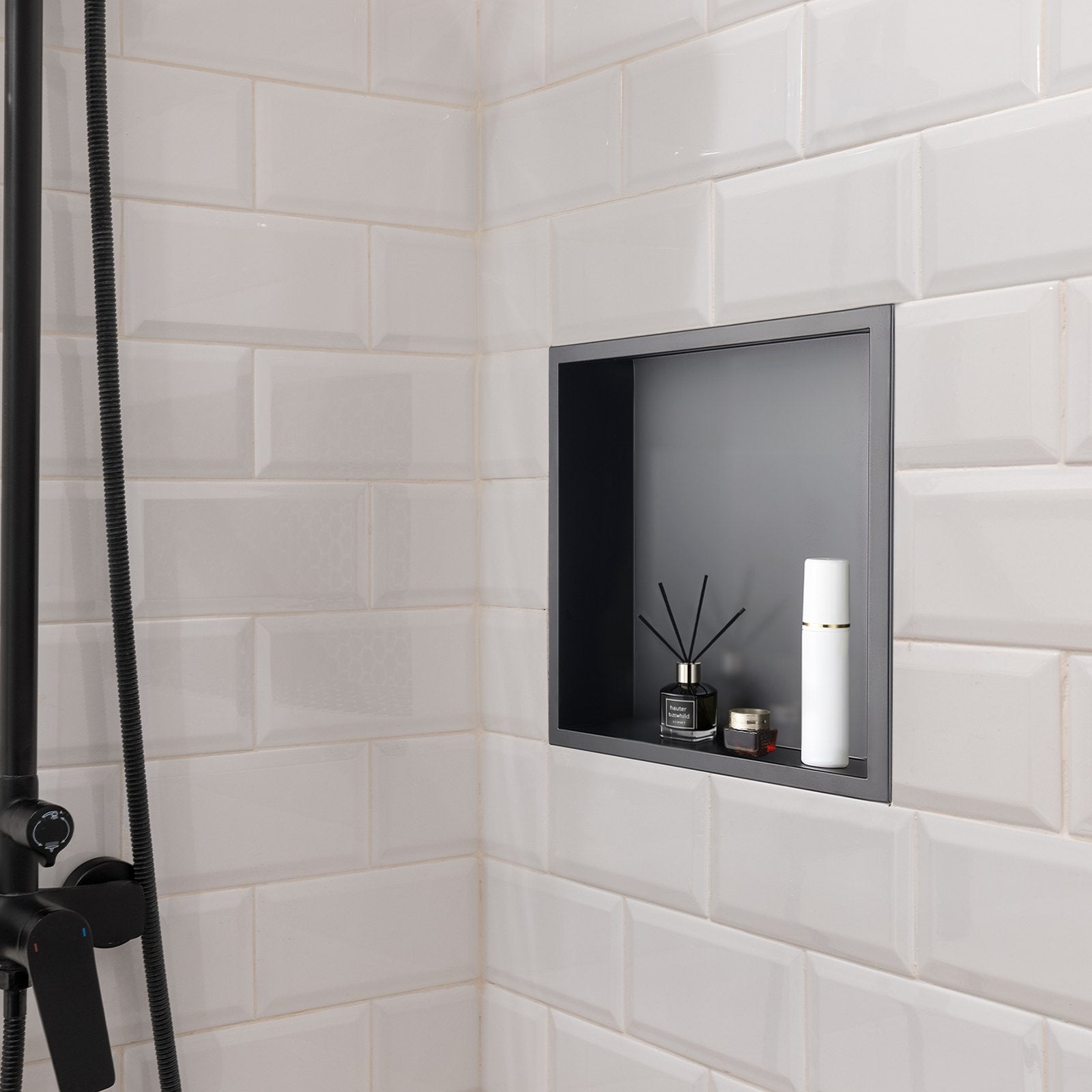 Shower Niche, 13 x 13 x 4 inch Recessed Wall Niche, Heavy-duty Stainless Steel Modern Soap & Shampoo Storage Organizer, Sealed Waterproof, Durable & Easy to Install,Black for Bathroom
