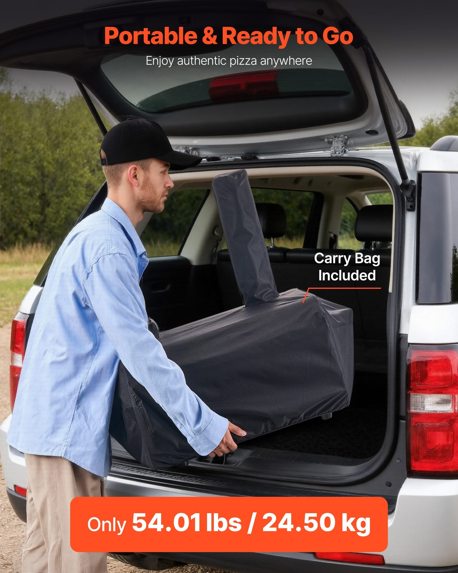 - Compact and Portable: Equipped with a carry bag, our portable pizza oven is lightweight and ideal for outdoor use. Easily transport and set up wherever you go, making it ideal for camping, picnics, and other outdoor adventures