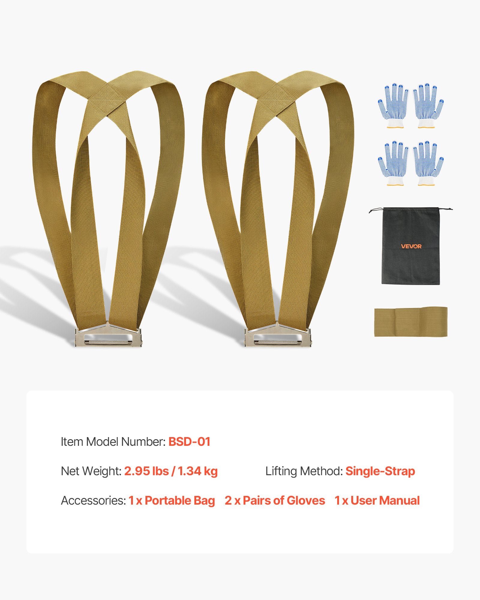 Moving Straps, Supports up to 1000 lbs, 2-Person Lifting and Moving System with 2 Harness Straps & 1 Load-bearing Strap, Adjustable Lifting Shoulder Straps Move Furniture Appliances Mattresses