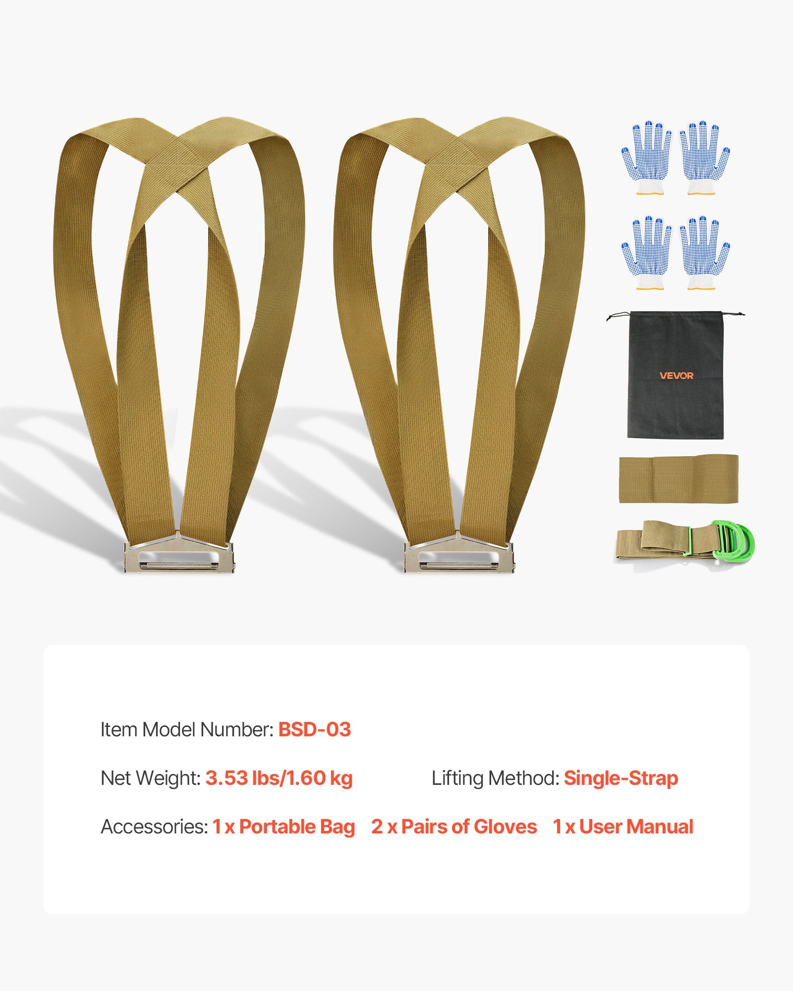 Moving Straps, 2-Person Lifting and Moving System with 2 Harness Straps, 1 Load-bearing Strap & 1 Handheld Strap, Adjustable Lifting Shoulder Straps Move Furniture Appliances Mattresses