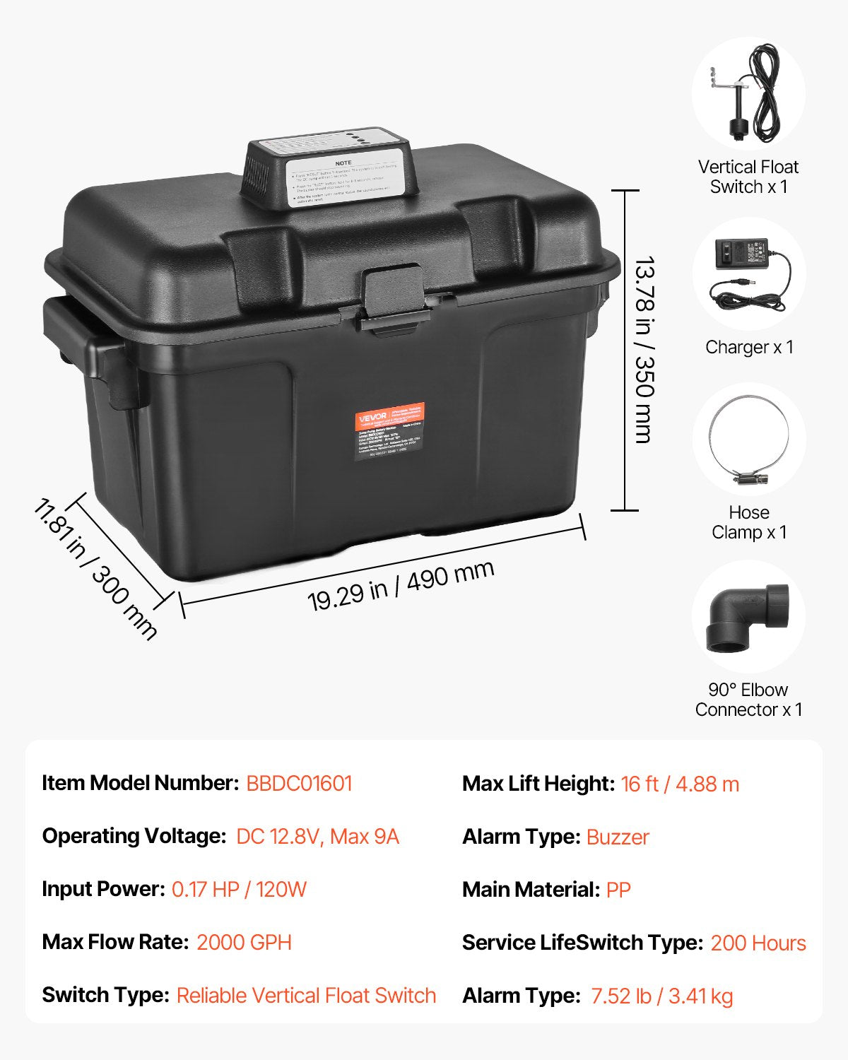 - Auto Detection & Alarm: The built-in control box monitors water levels, power status, battery status, and float switch signals 24/7. In the event of any abnormal condition, it automatically activates the backup pump and sounds a loud buzzer alarm