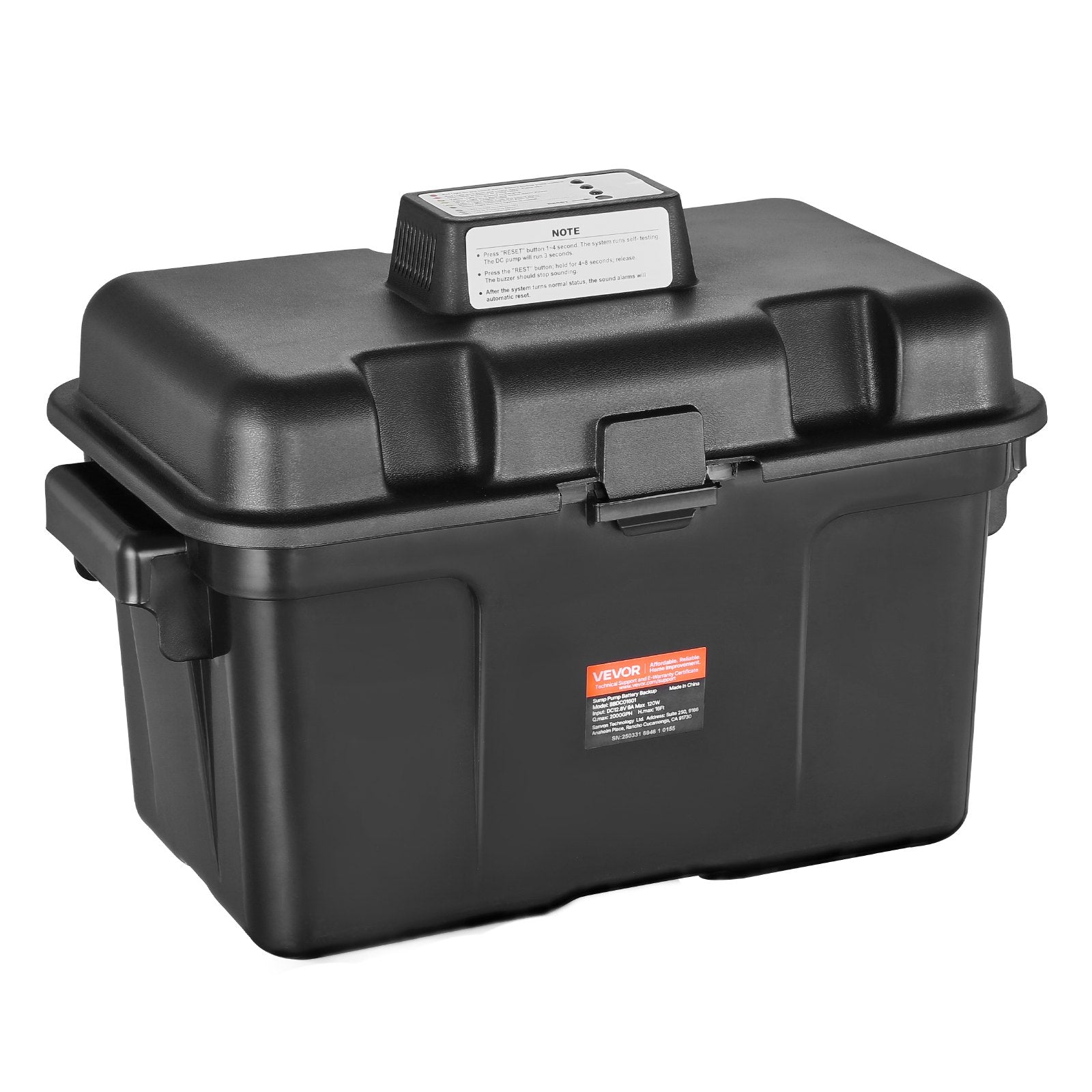 Basement Emergency Back-Up Sump Pump, 2000GPH 0.17 HP Backup Sump Pump System, with 15V Adapter, Float Switch, 24-Hour-a-Day Monitoring Controller, Alerts, and Charger, Black