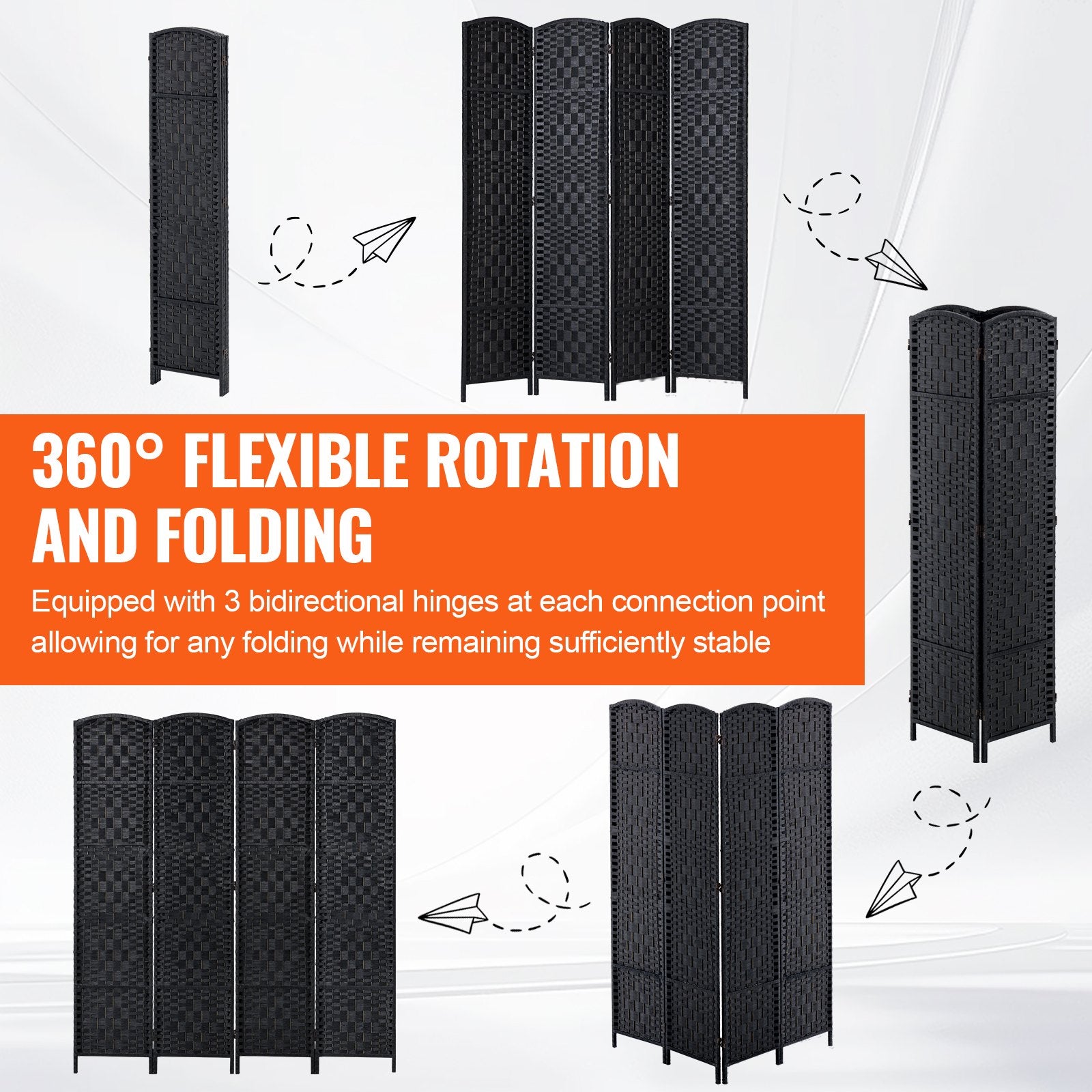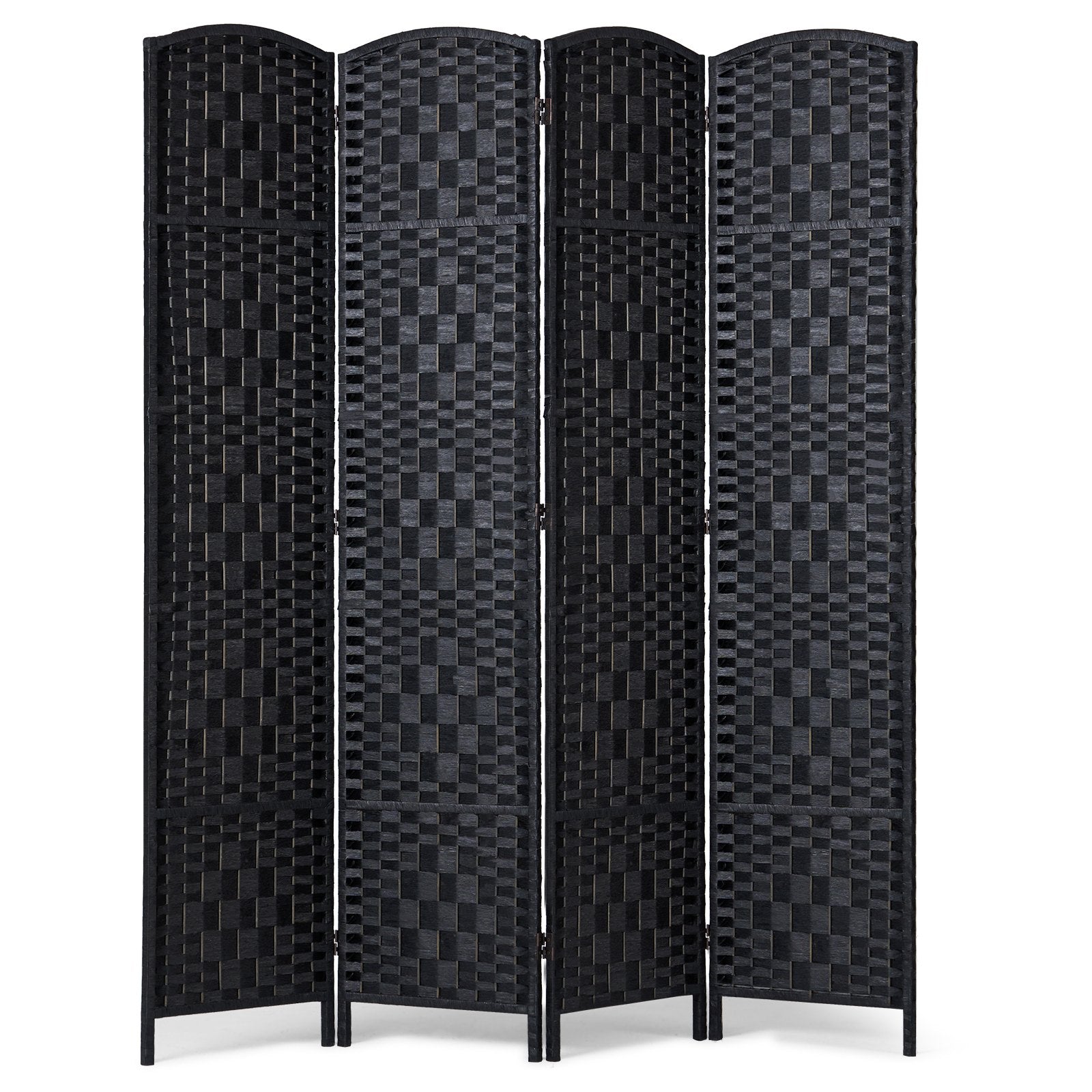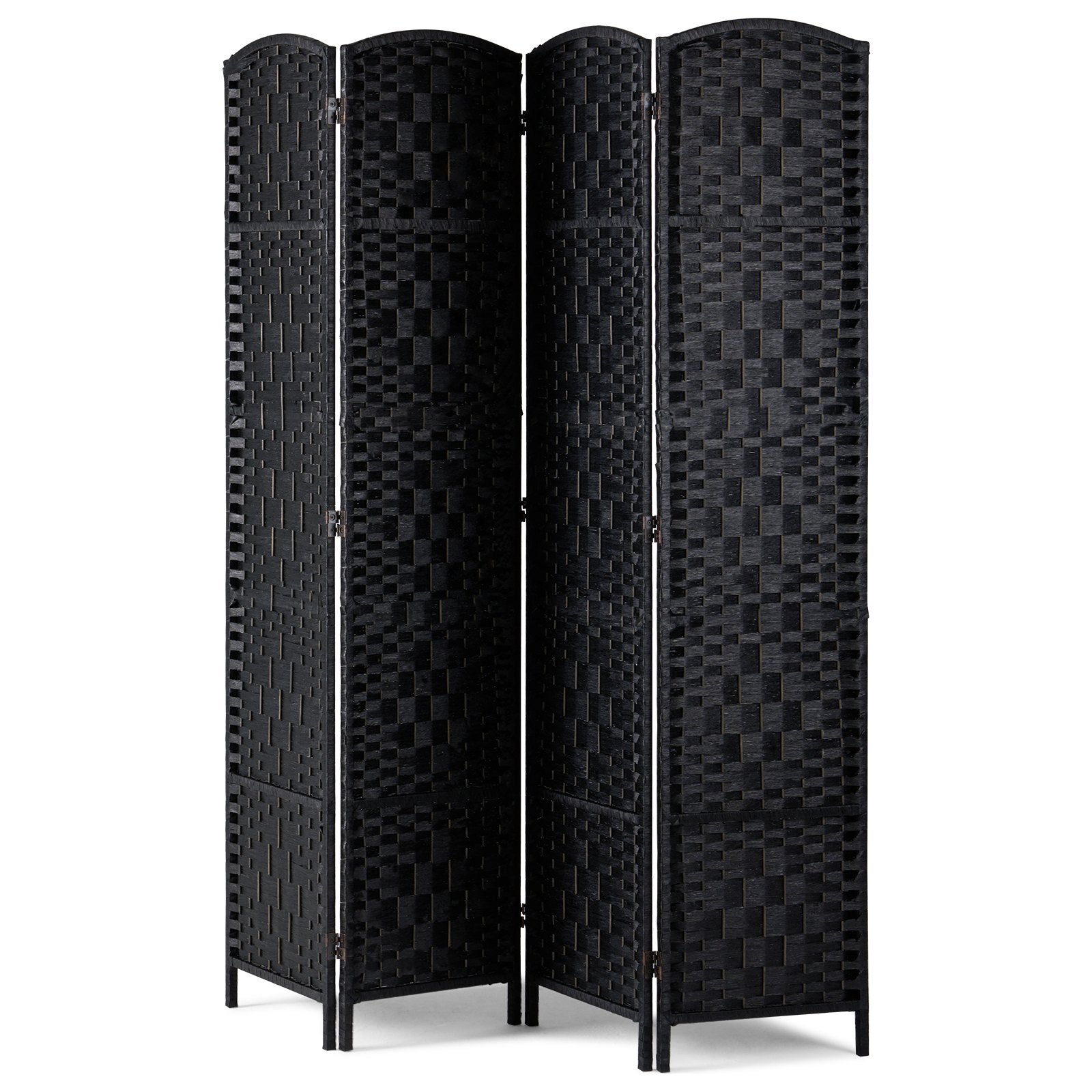 4 Panel Room Divider, Hand-Woven Folding Privacy Screens with Hinges, Portable and Freestanding Partition Room Dividers and Wall Divider for Room Separation, Black