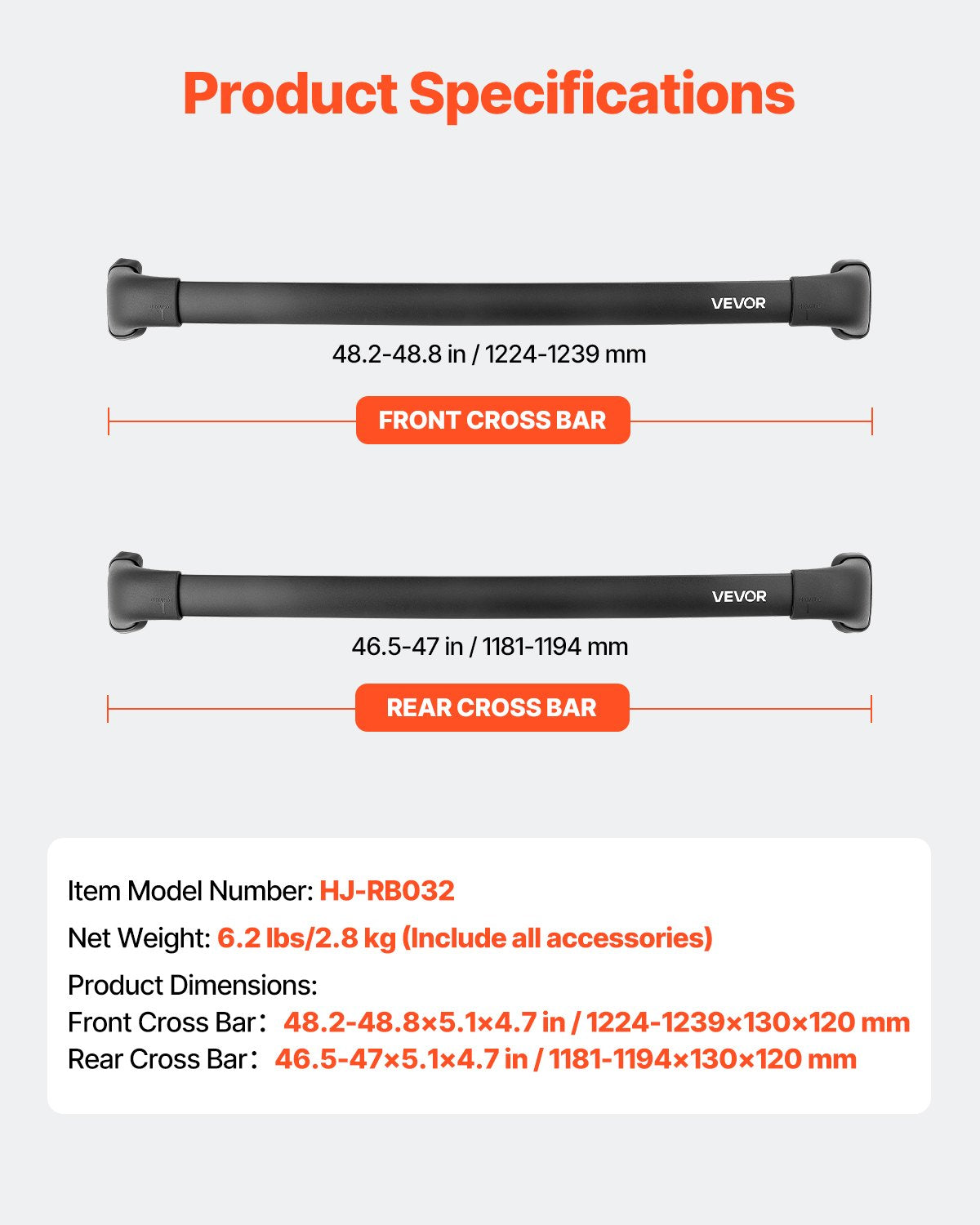 - Rear Cross Bar: 46.5-47 x 5.1 x 4.7 inch/1181-1194 x 130 x 120 mm