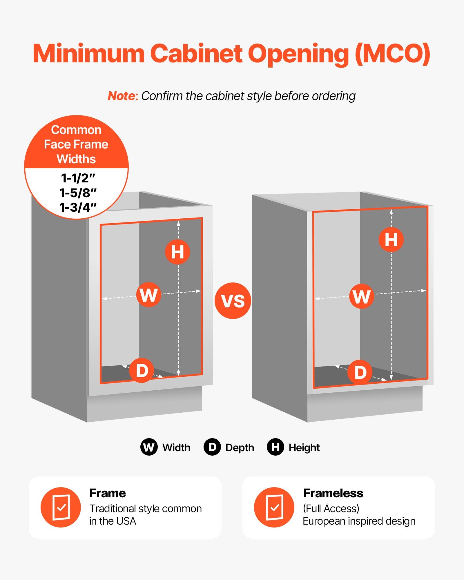 - Easy Installation in Minutes: With the included mounting holes and screws, installing the trash can into your cabinet is quick and easy. Our pullout waste container comes with a door kit for mounting to the cabinet door, allowing you to conveniently pull out the trash bin. Recommanded cabinet size: Depth(front and back): ≥565 mm / ≥22.2 inch; Width(right and left): ≥368 mm / ≥14.5 inch; Vertical Height(up and down): ≥480 mm / ≥19 inch