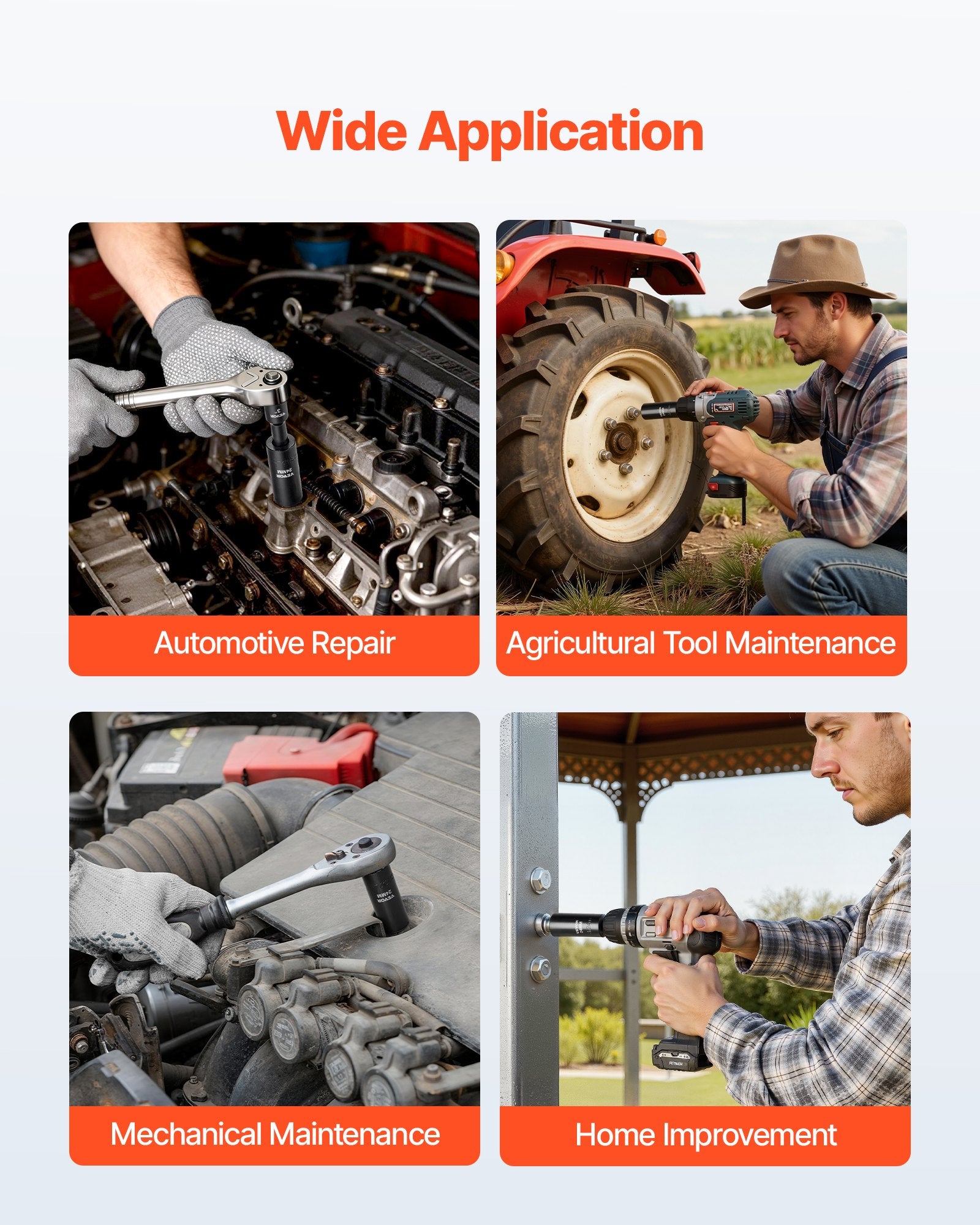 - Enhanced Repair Efficiency: The 6-point socket design increases contact area with fasteners for a stronger grip. This reduces wear, avoids rounding of corners, and ensures bolts stay locked in place—even when using high-torque impact wrenches