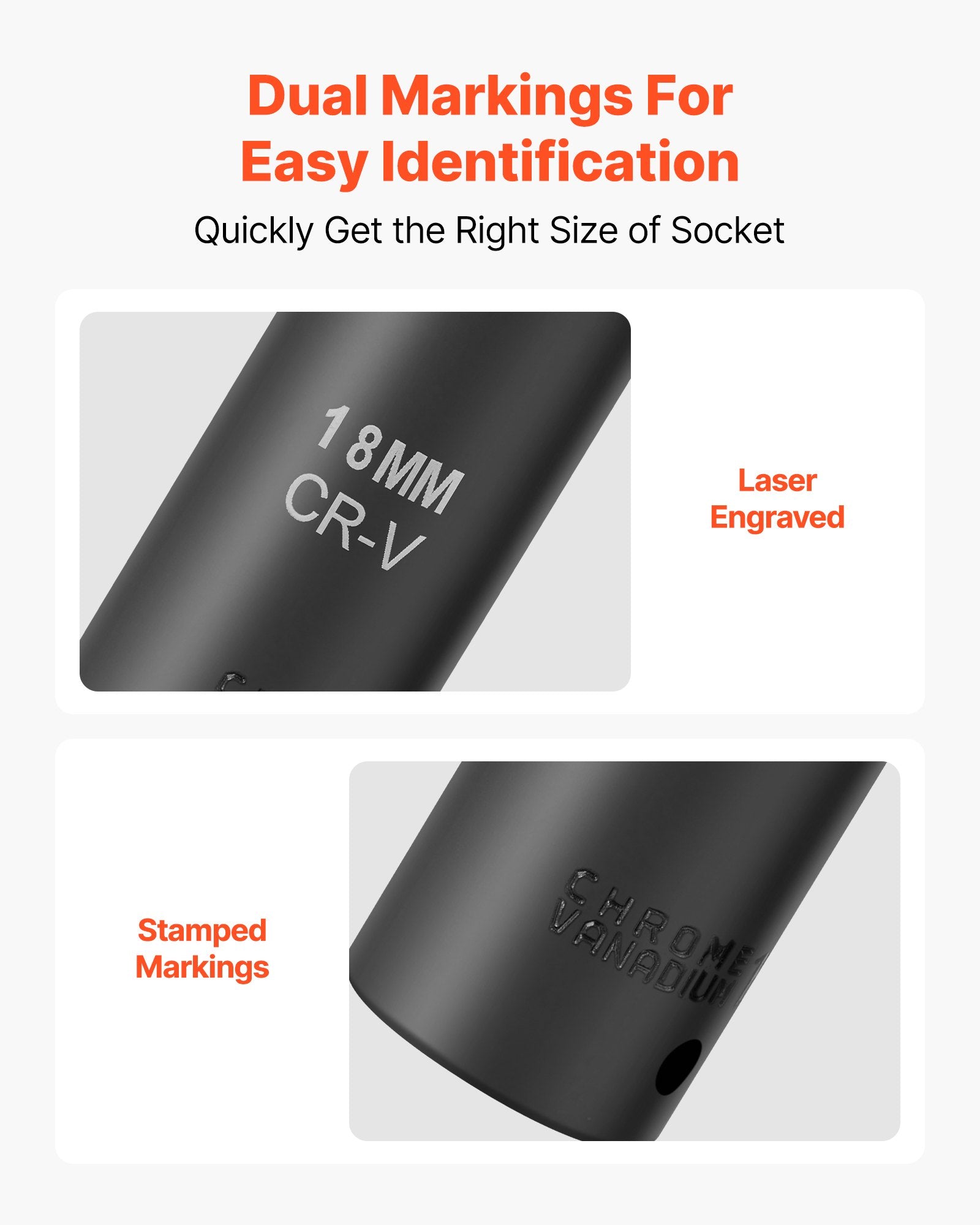 - Clear Size Markings: The wear-resistant size markings on each impact driver socket are meticulously laser-etched and rolled, ensuring clear and precise identification even in low light conditions