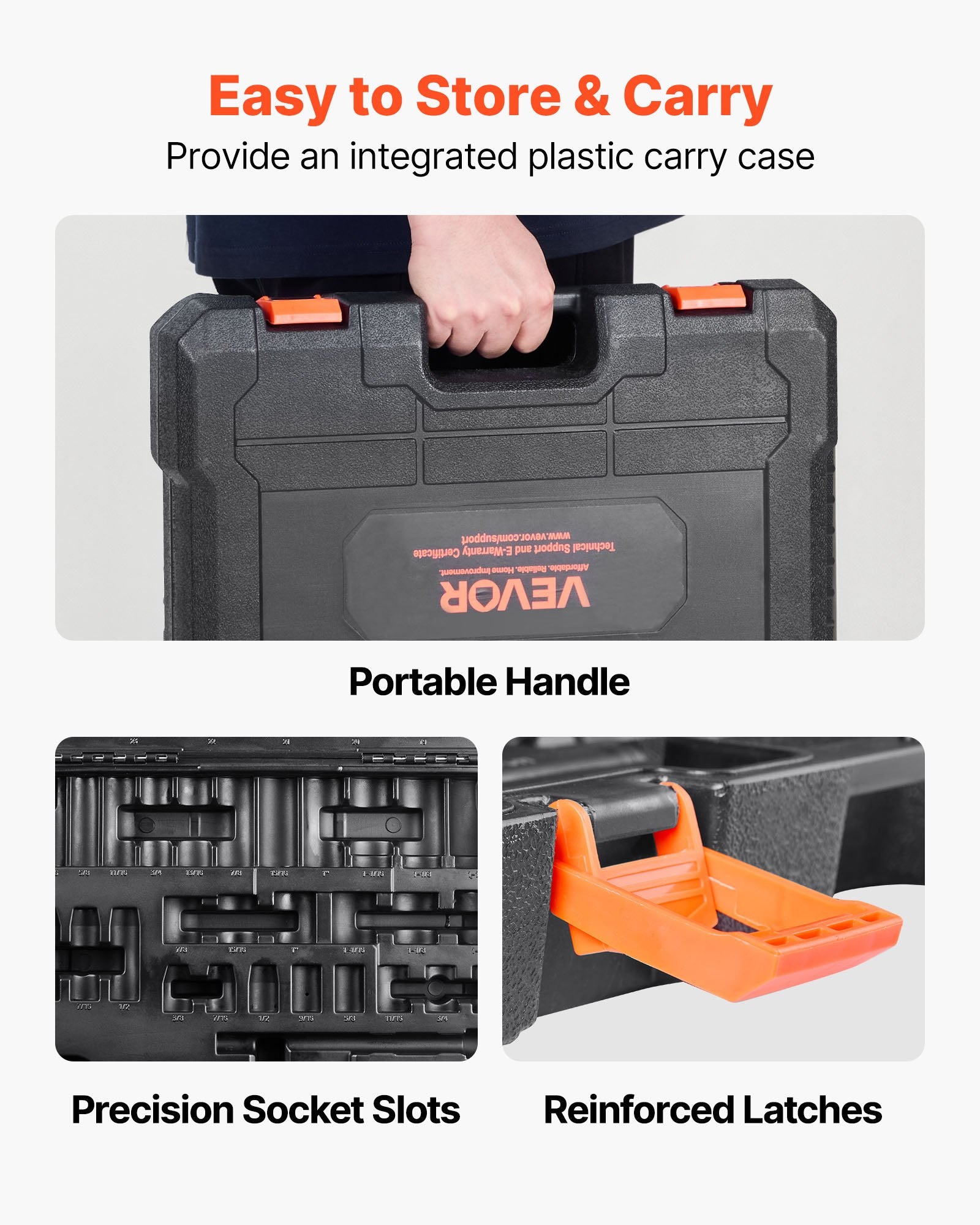- Easy Storage and Portability: Our 65-piece SAE and metric socket set includes a sturdy plastic toolbox that keeps your sockets organized and protected from damage. It prevents tools from scattering or loss, ensuring secure storage and easy transportation.