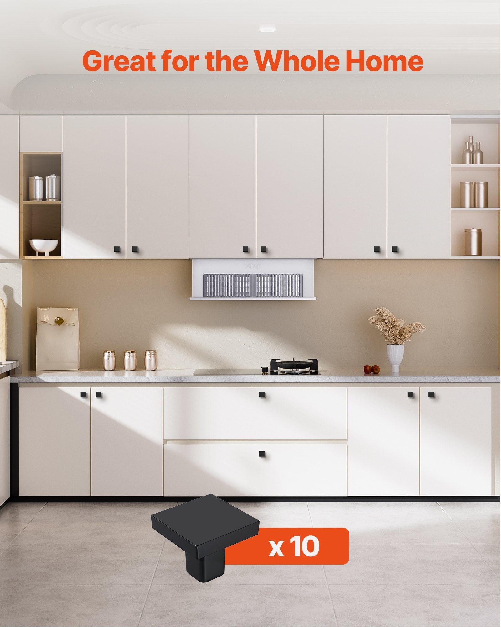 Cabinet Knobs, 10 Pack, 1.18 Inch Black Zinc Alloy Drawer Pulls & Door Handles, Square Kitchen Solid Knobs Dresser Handles, Cupboard Hardware with Screws for Bathroom Closet Cabinets Drawers