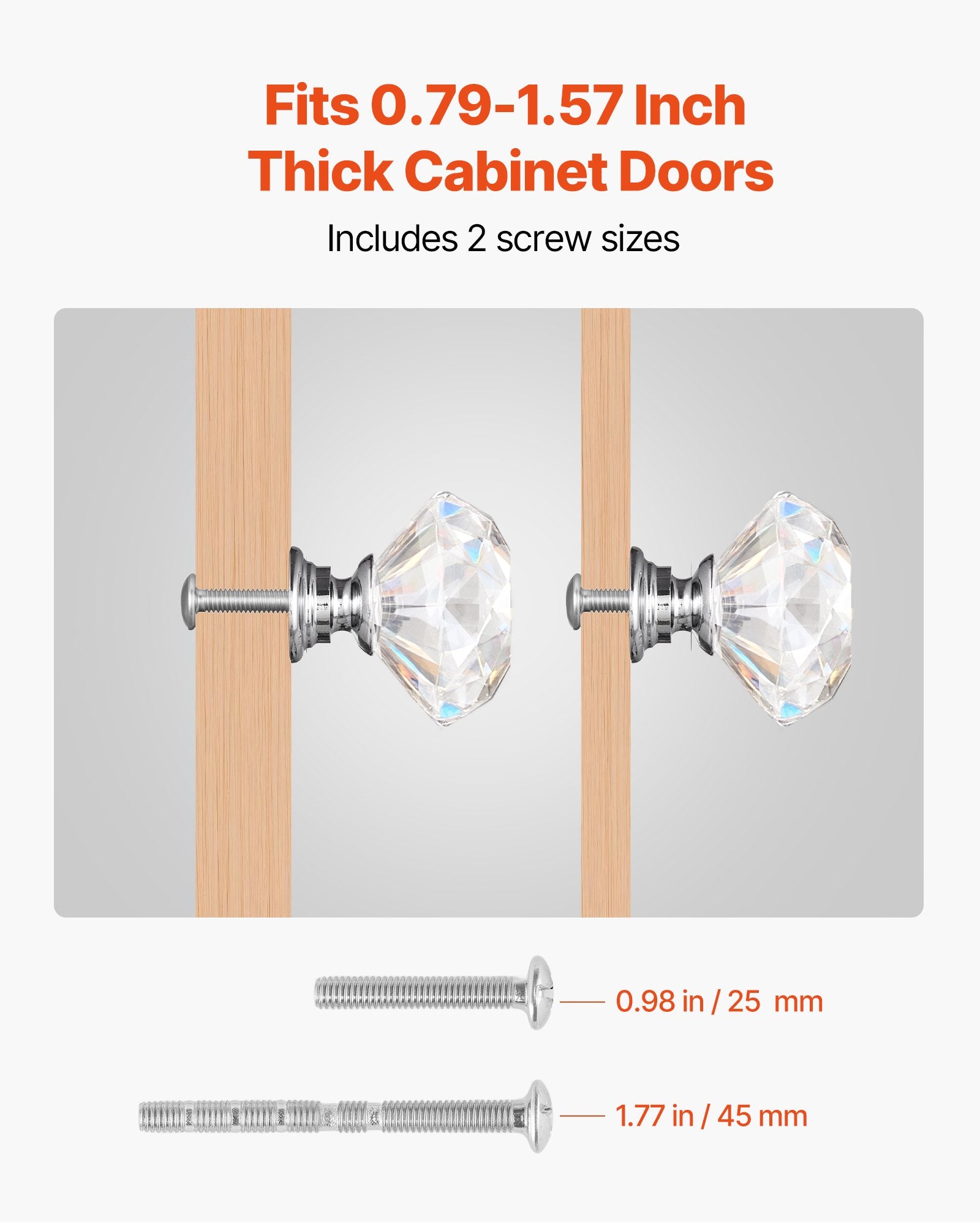- Easy Installation: Our dresser knobs come with twenty-four screws in two sizes to fit cabinet doors 0.79-1.57 in/20-40 mm thick. The screws can be trimmed to match the door thickness. No complicated tools or skills required, just simple setup