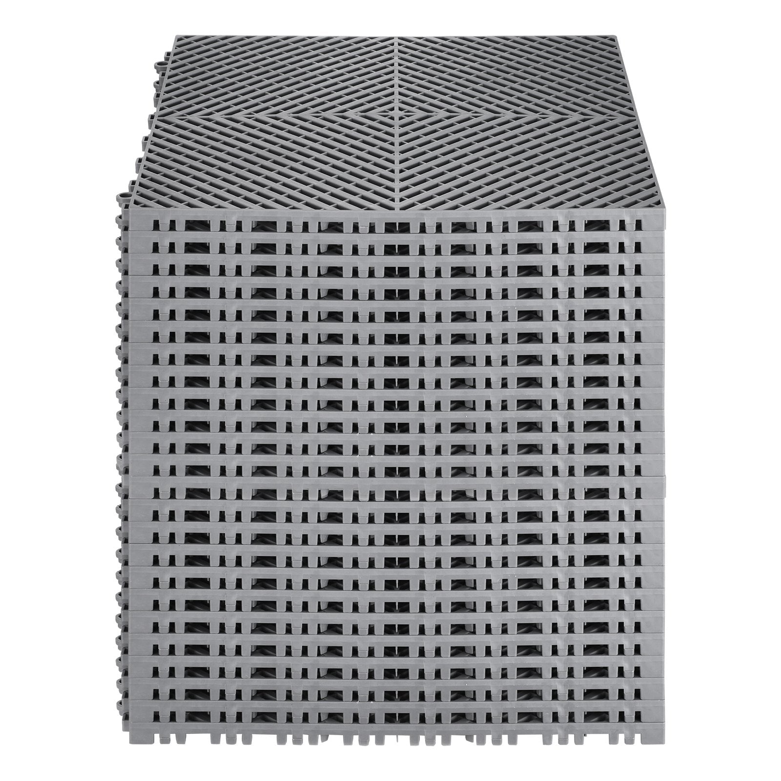 Interlocking Drainage Mat, 15.7” x 15.7” Modular Interlocking Cushion, 24 Pcs Splicing Drainage Mats, Non-Slip Gray PP Drainage Floor Tile and Shower Mat, for Garage, Garden, Kitchen & Outdoor