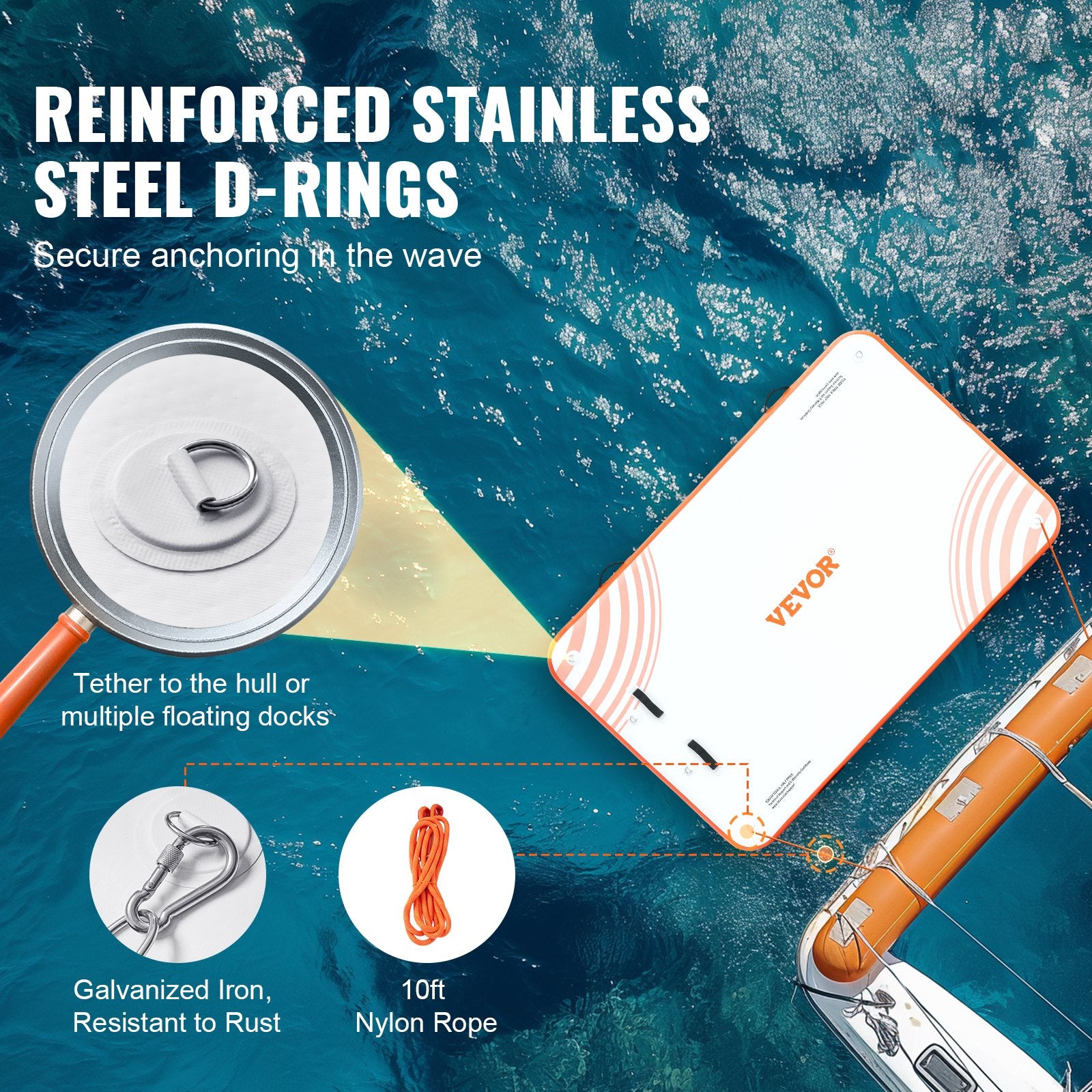 - Enjoy Pleasant Water Fun: Immerse yourself in water activities with VEVOR inflatable floating dock! Engineered from high-density 2700g/㎡ PVC brushed fabric, it offers a non-slip and durable surface for stability and safety. The included dual-action hand pump with pressure gauge ensures quick and effortless inflation and deflation, making setup a breeze for all.