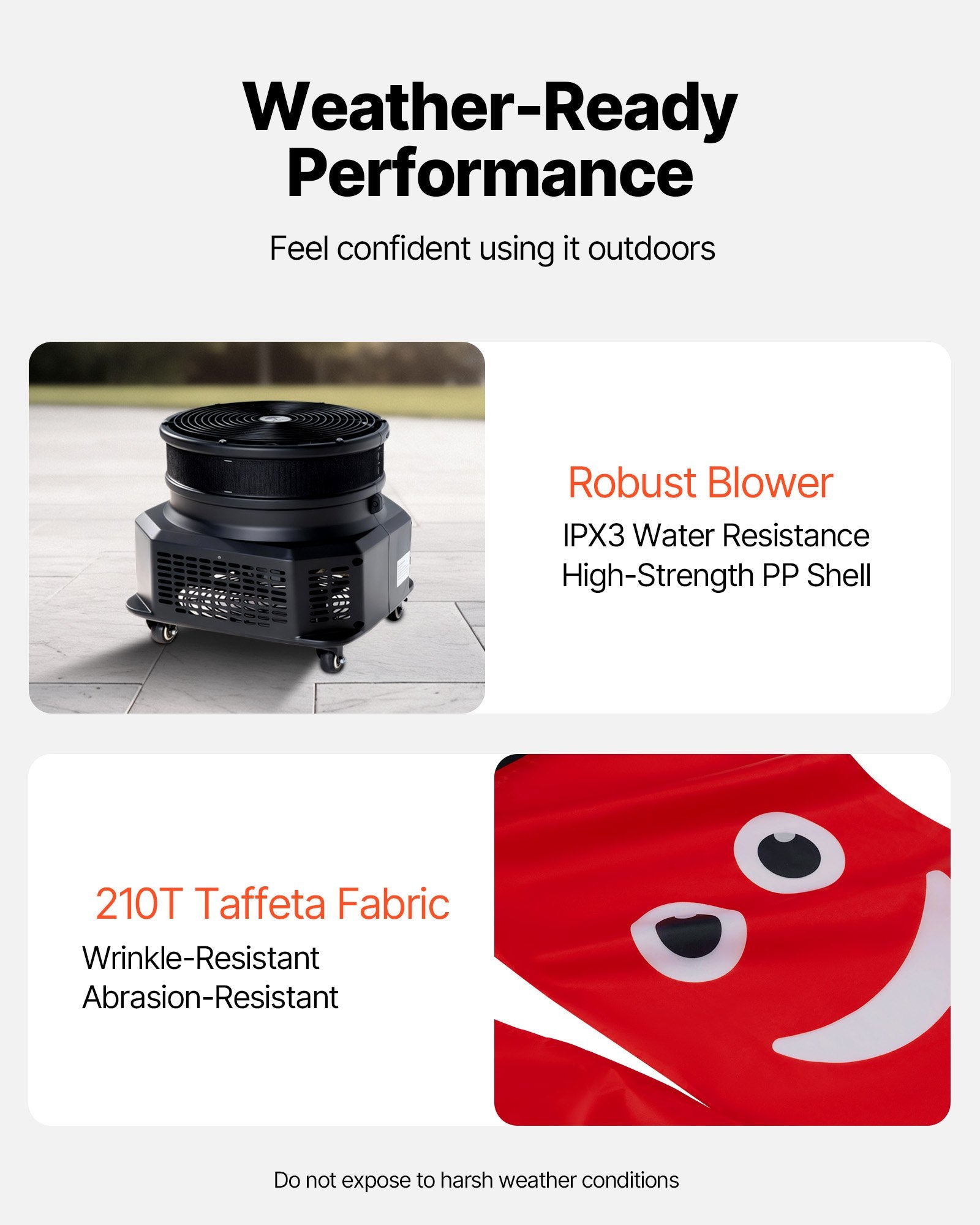 - Durable Build: Our inflatable dancing man adopts tough 210T polyester material for tear resistance, while the high-strength PP blower shell resists impact and wear. Our set is weather-resistant for reliable outdoor use (avoid exposure to harsh weather)