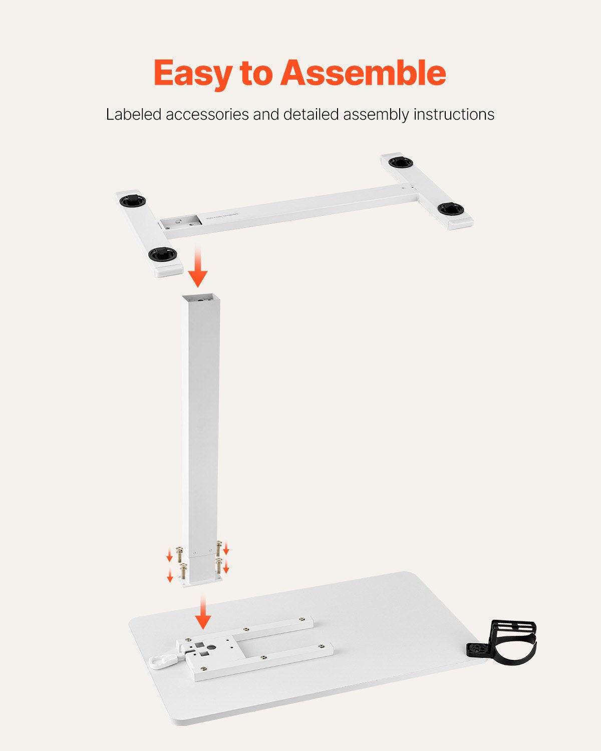 - Adjustable Height: With a smooth hydraulic system, this overbed table adjusts from 25.4 in / 64.5 cm to 40.47 in / 102.8 cm — ideal for sitting and standing. Plus, the tabletop tilts 0-60°, making it ideal for reading, working, or drawing.