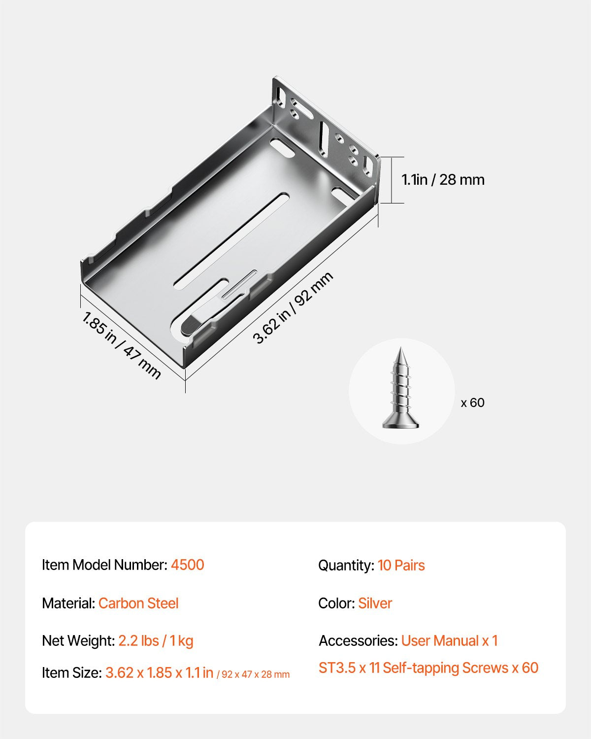 - Set of 20 Pieces: Each set includes 20 installation brackets (10 pairs), suitable for installing at least 10 drawers. The set also includes self-tapping screws and an installation manual to guide you through the installation process