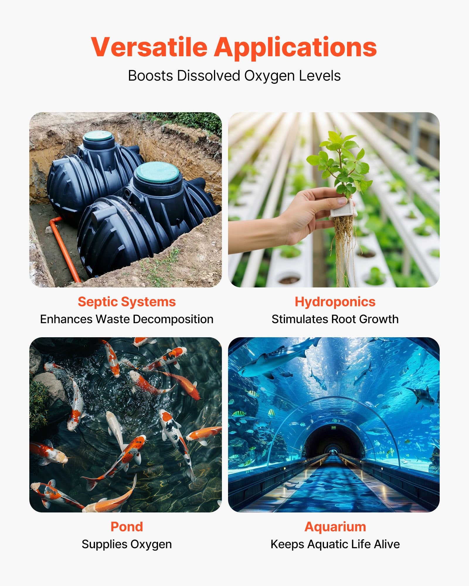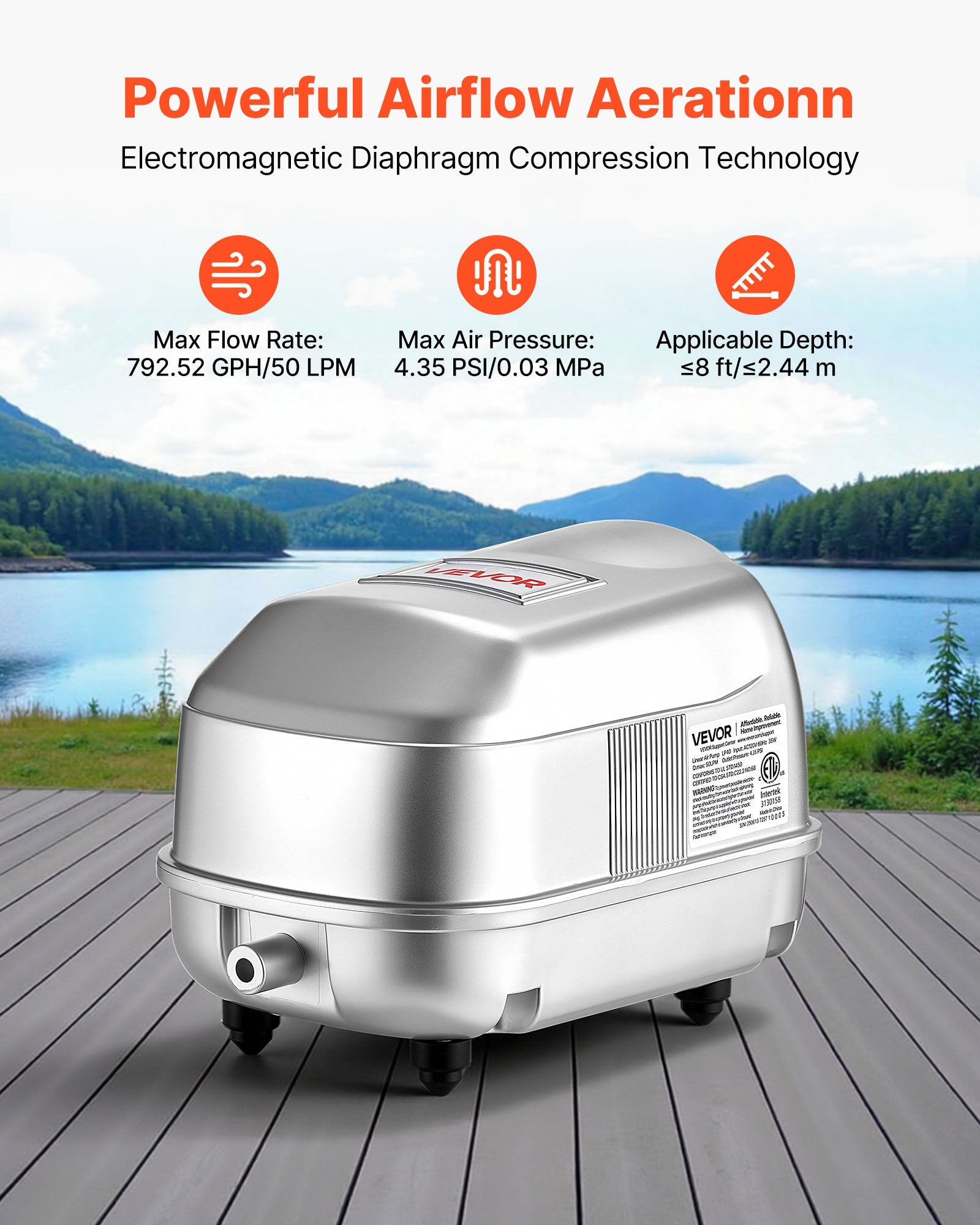 Linear Air Pump, 792.52 GPH Air Flow, Septic Aerator Pump, Aeration System for 8 ft Deep Ponds, Fit for Septic Tanks, Aquariums, Waste Treatment, Seafood Restaurants, Fish Farms, Hydroponics