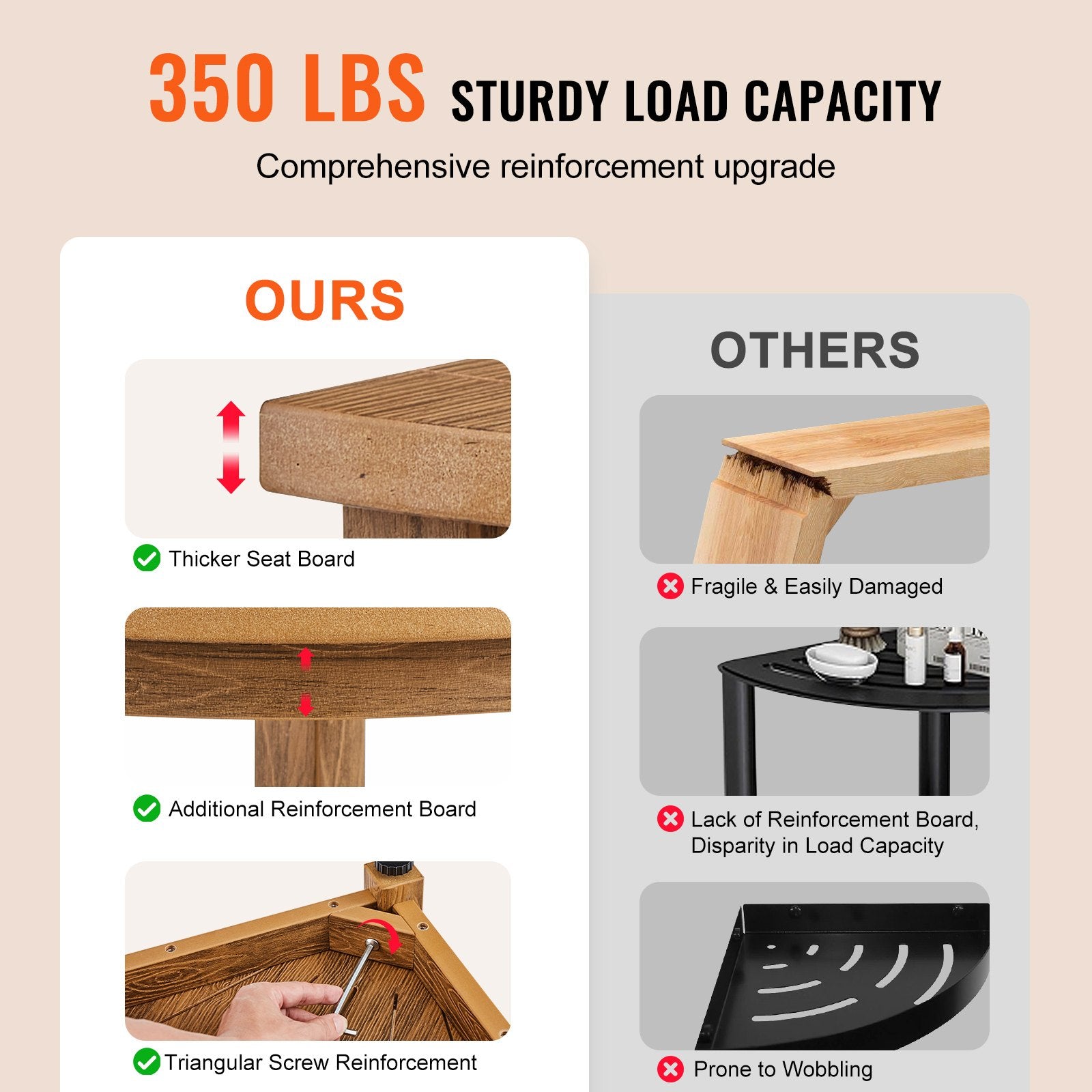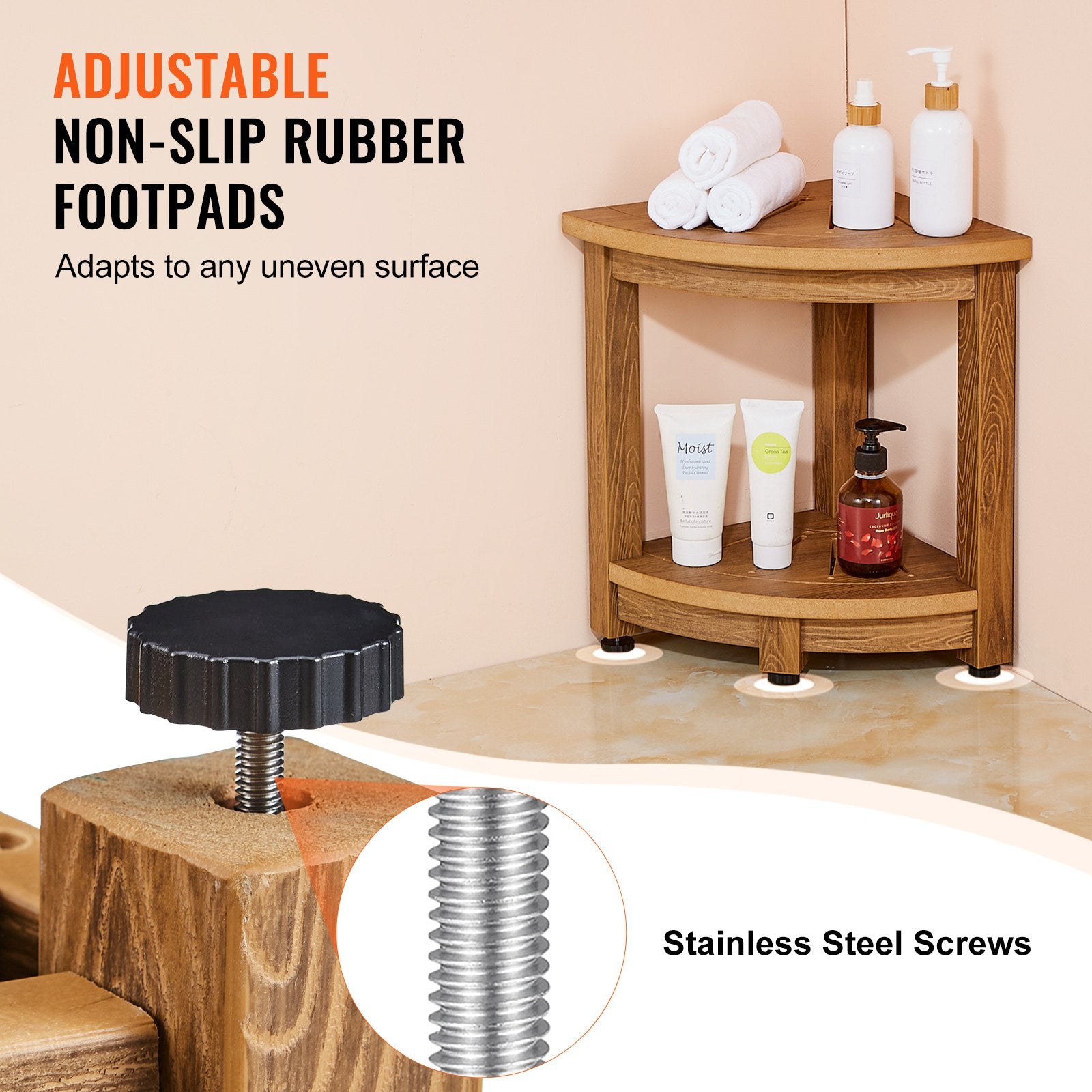 Corner Shower Bench, 16.5" Height 12.8" Radius, Faux Wood Grain Polystyrene, 350 LBS with Storage Shelf, Water Resistant, Shower Stool for Inside & Outside Shower, for Bathroom, Living Room