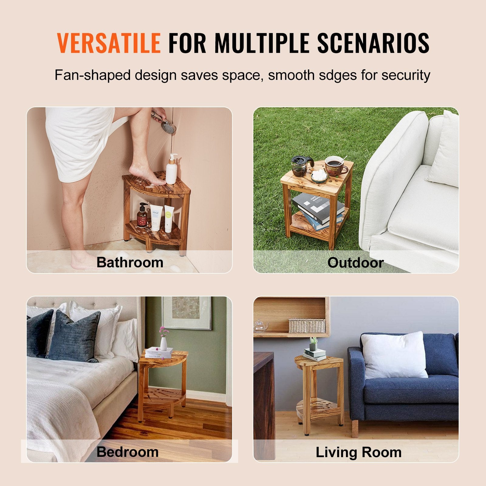 - Versatile: Double-layered design increases storage space, suitable for storing towels, shower gel, and other items, serving as a footrest or storage stool for convenient foot care and showering. Fan-shaped design fits snugly against walls, making efficient use of corner space. Suitable for use in bathrooms, outdoors, bedrooms, living rooms, and more.
