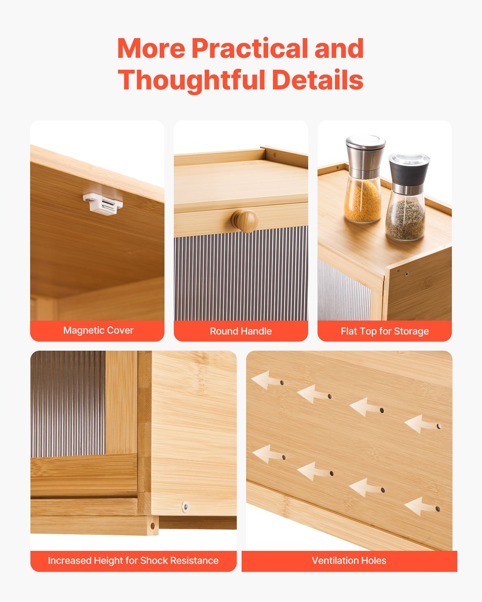 - Durable and Ventilated Material: Crafted from natural bamboo, this wooden bread storage bin is both reliable and durable. The back features ventilation holes that promote airflow, extending the freshness of your bread and keeping food fresh